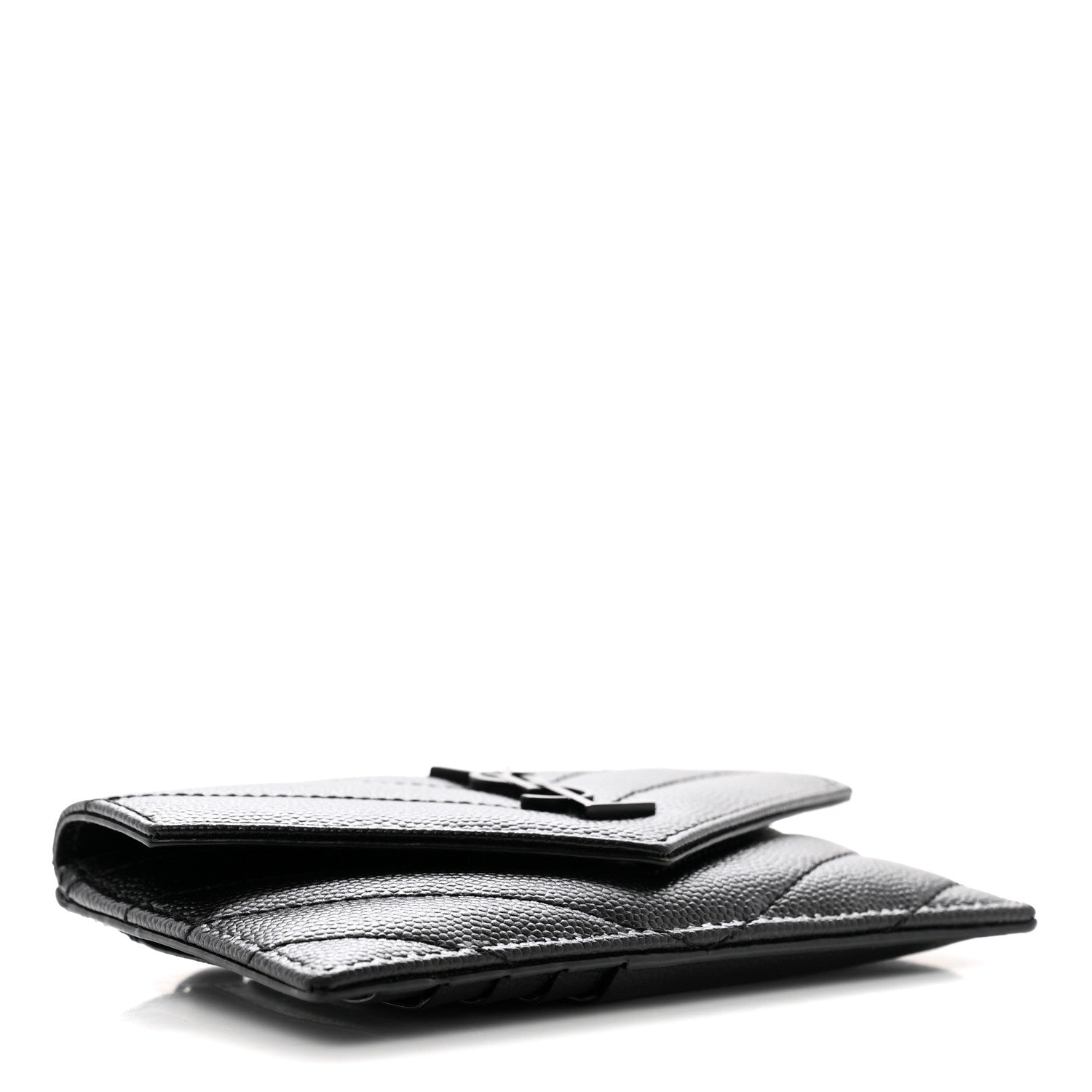 Saint Laurent/ Accessories/ Wallets /Saint Laurent Grain De Poudre Matelasse Chevron Monogram Monochrome Compact Wallet Black