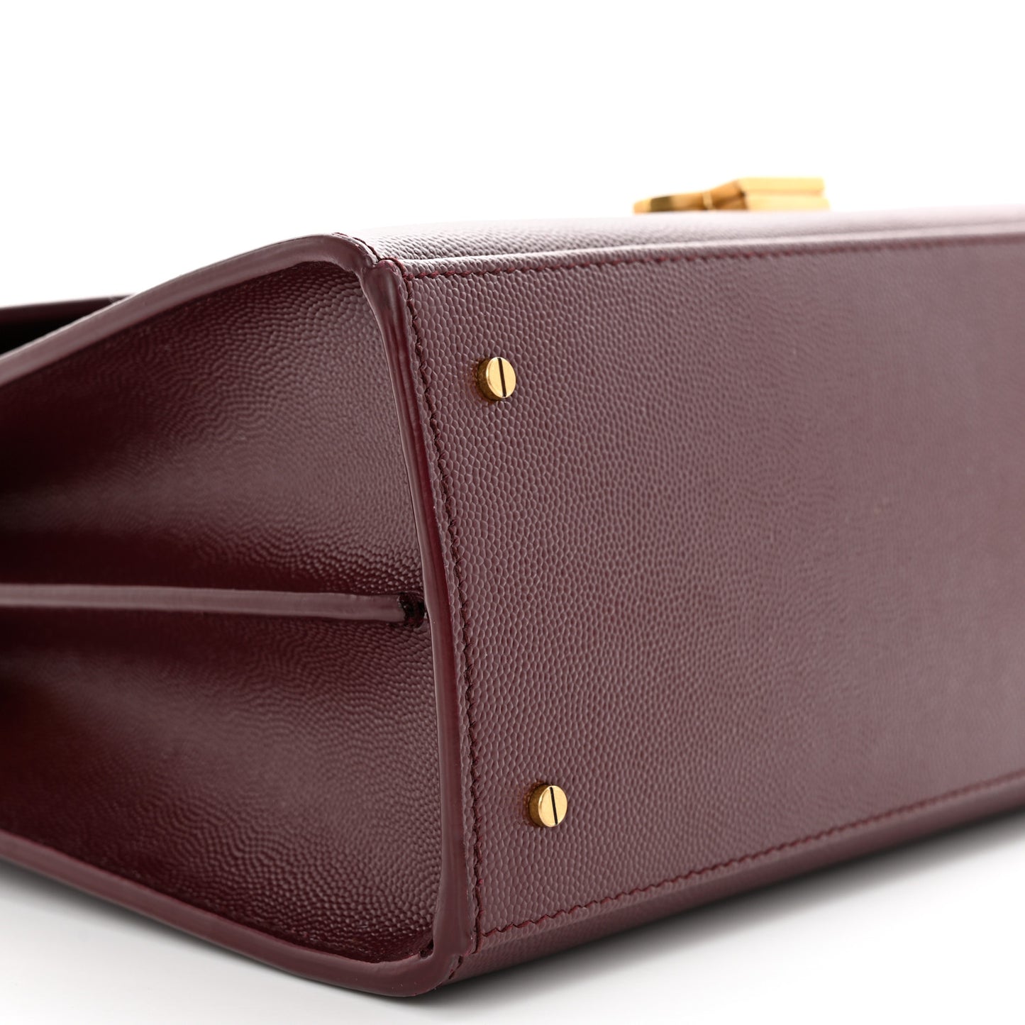 This is an authentic SAINT LAURENT Grain de Poudre Medium Classic Monogram Cassandra Top Handle in Rouge Legion. This chic shoulder bag is crafted of pebble grain dark red leather. The bag features a rear patch pocket, gusseted side panels, a sturdy leather top handle, and an optional, adjustable shoulder strap with aged gold hardware. The envelope-style crossover flap opens with a matching gold YSL monogram press lock to a partitioned black leather interior with a patch pocket.Follow this item for alerts. Saint Laurent is a registered trademark of Saint Laurent. FASHIONPHILE is not affiliated with Saint Laurent.