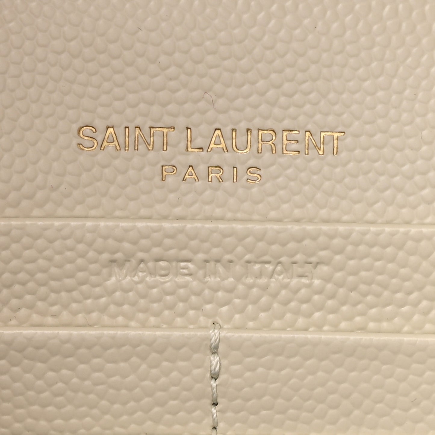 This is an authentic SAINT LAURENT Grain De Poudre Mixed Matelasse Triquilt Monogram Chain Wallet in Crema Soft. This bag is crafted of pebbled chevron and diamond quilted leather in white and features a removable gold chain link shoulder strap. The front flap has a prominent gold-toned YSL weighted emblem and opens with a snap to a black leather interior with a patch pocket, cards slots, and zippered compartment.Follow this item for alerts. Saint Laurent is a registered trademark of Saint Laurent. FASHIONPHILE is not affiliated with Saint Laurent.