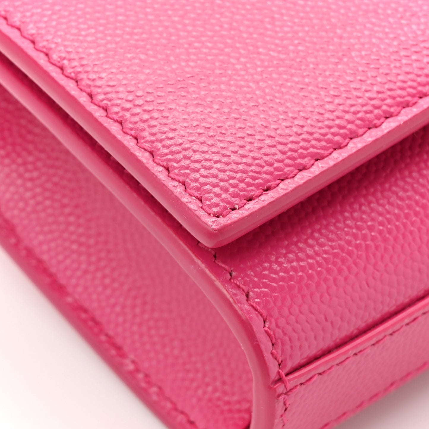 This is an authentic SAINT LAURENT Grain De Poudre Monogram Mini Kate Belt Bag in Fuchsia. This chic belt bag is crafted of grained calfskin leather in bright pink. It features an adjustable belt strap with gold hardware. The flap opens to a compact black leather interior with a patch pocket and card slots.Follow this item for alerts. Saint Laurent is a registered trademark of Saint Laurent. FASHIONPHILE is not affiliated with Saint Laurent.
