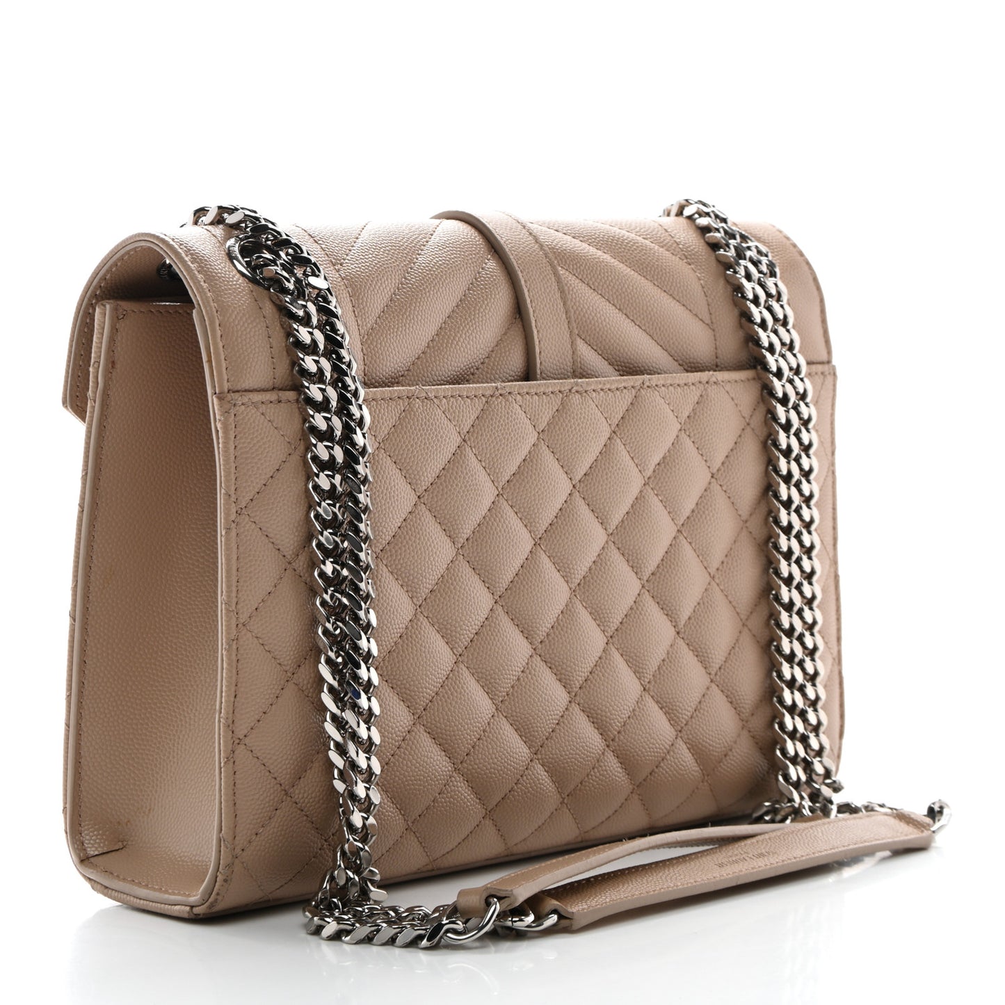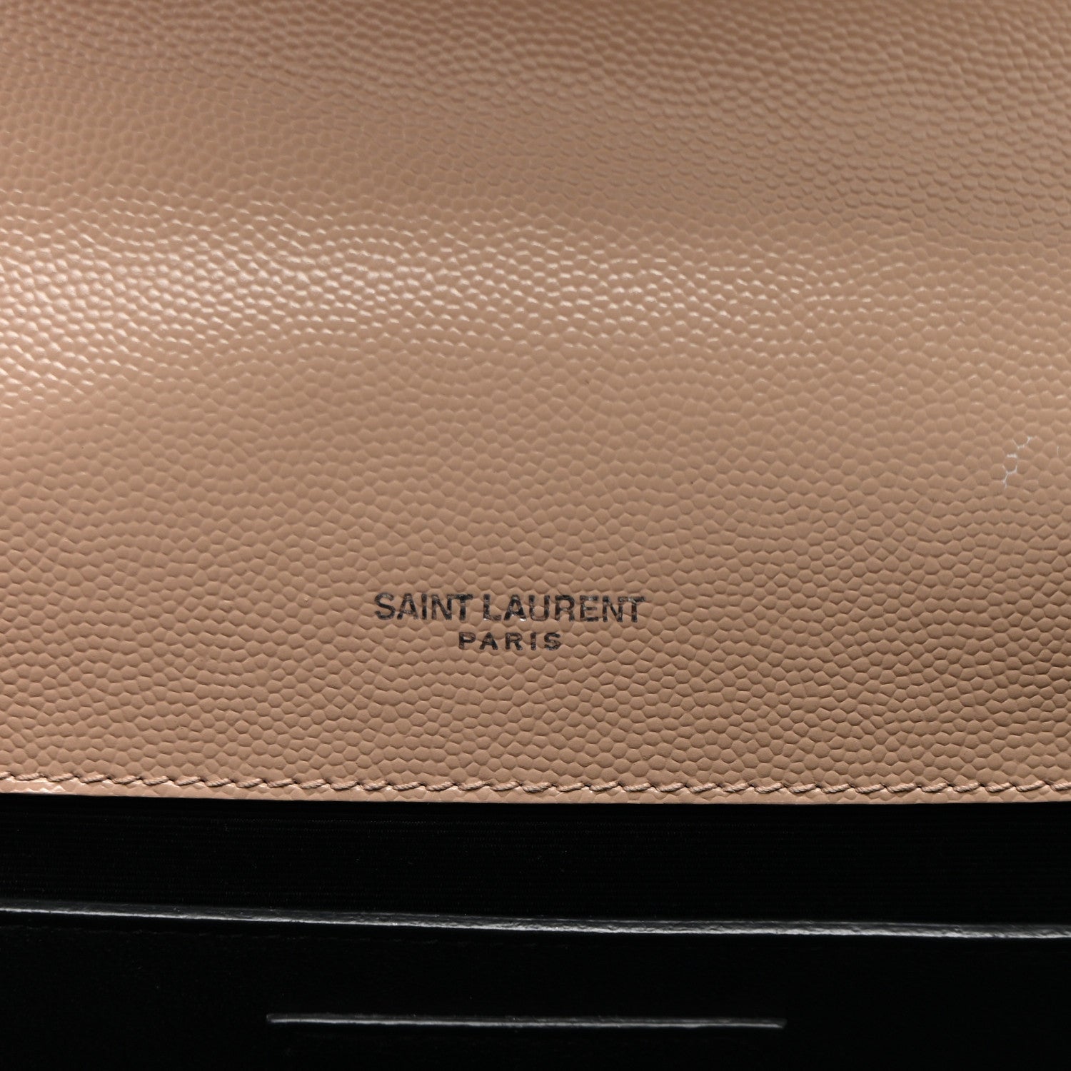 Saint Laurent/ Bags/ Shoulder Bags /Saint Laurent Grain De Poudre Textured Mixed Matelasse Medium Triquilt Monogram Satchel Dark Beige