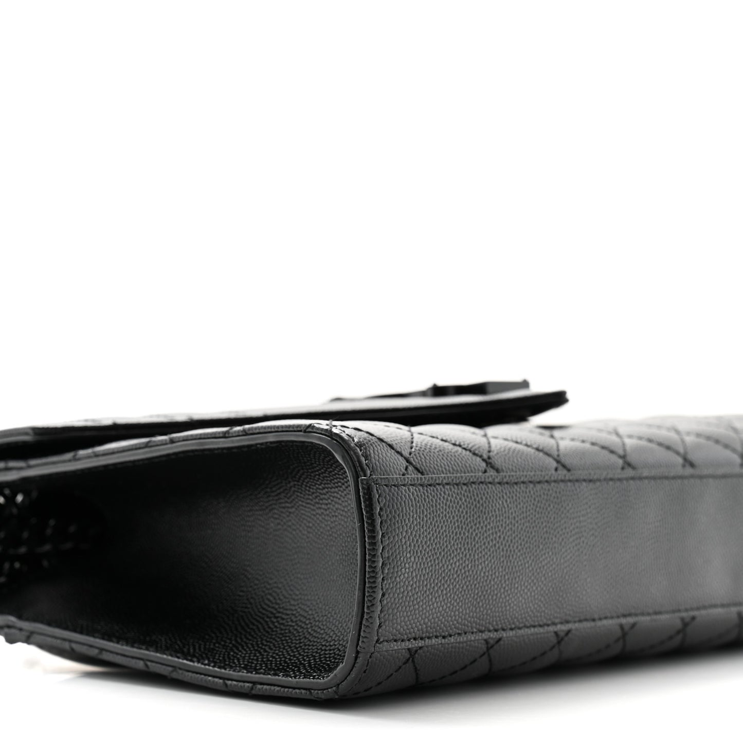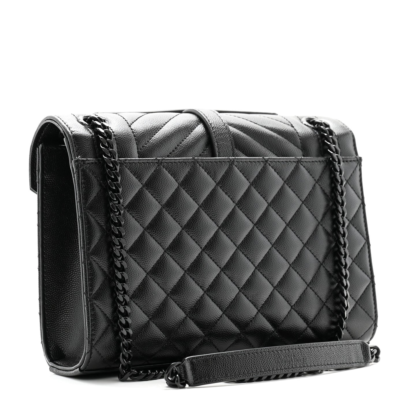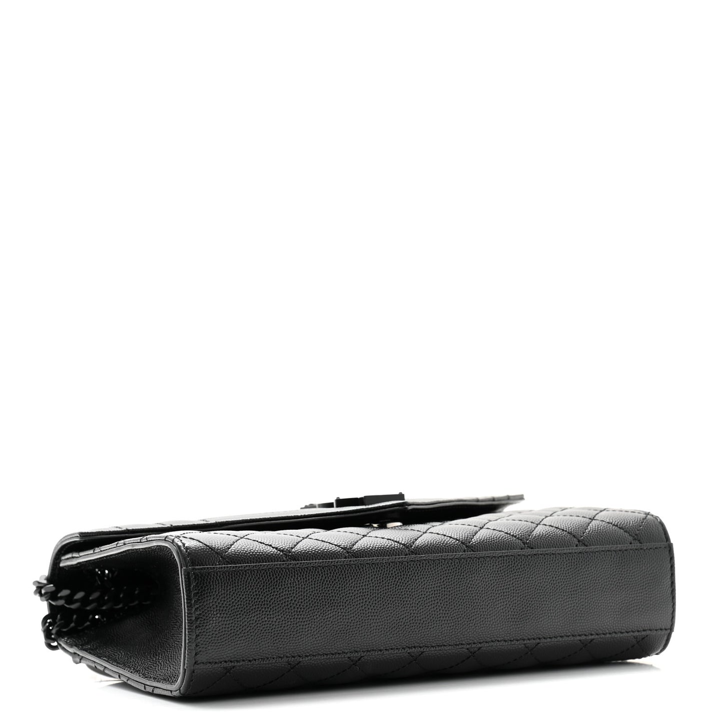 This is an authentic SAINT LAURENT Grain De Poudre Textured Mixed Matelasse Triquilt Medium Monogram Monochrome Satchel in Black. This shoulder bag is crafted of black-grained leather with chevron, linear, and diamond quilting. It features a large exterior flat pocket, black chain-link shoulder straps with leather shoulder pads, and an envelope-style flap with a black YSL monogram closure. This opens with a magnetic snap to a black fabric interior with a patch pocket.Follow this item for alerts. Saint Laurent is a registered trademark of Saint Laurent. FASHIONPHILE is not affiliated with Saint Laurent.