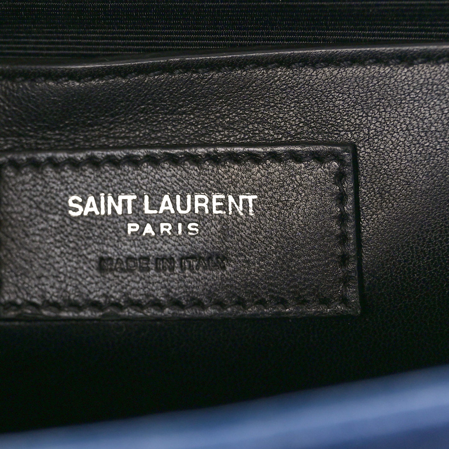 Saint Laurent/ Bags/ Shoulder Bags /Saint Laurent Grain De Poudre Textured Mixed Matelasse Triquilt Medium Monogram Satchel Denim