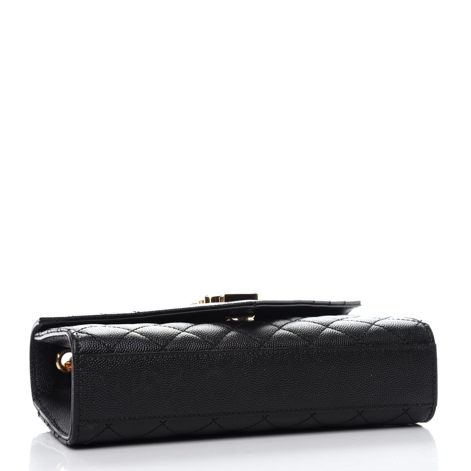 This is an authentic SAINT LAURENT Grain De Poudre Textured Mixed Matelasse Triquilt Small Monogram Satchel in Black. This elegant shoulder bag features chic chevron-quilted leather in black. The bag has a gold bijoux chain-link shoulder strap with a black leather shoulder pad. The frontal flap has a prominent gold YSL monogram detail and opens to a fabric interior with a patch pocket.Follow this item for alerts. Saint Laurent is a registered trademark of Saint Laurent. FASHIONPHILE is not affiliated with Saint Laurent.