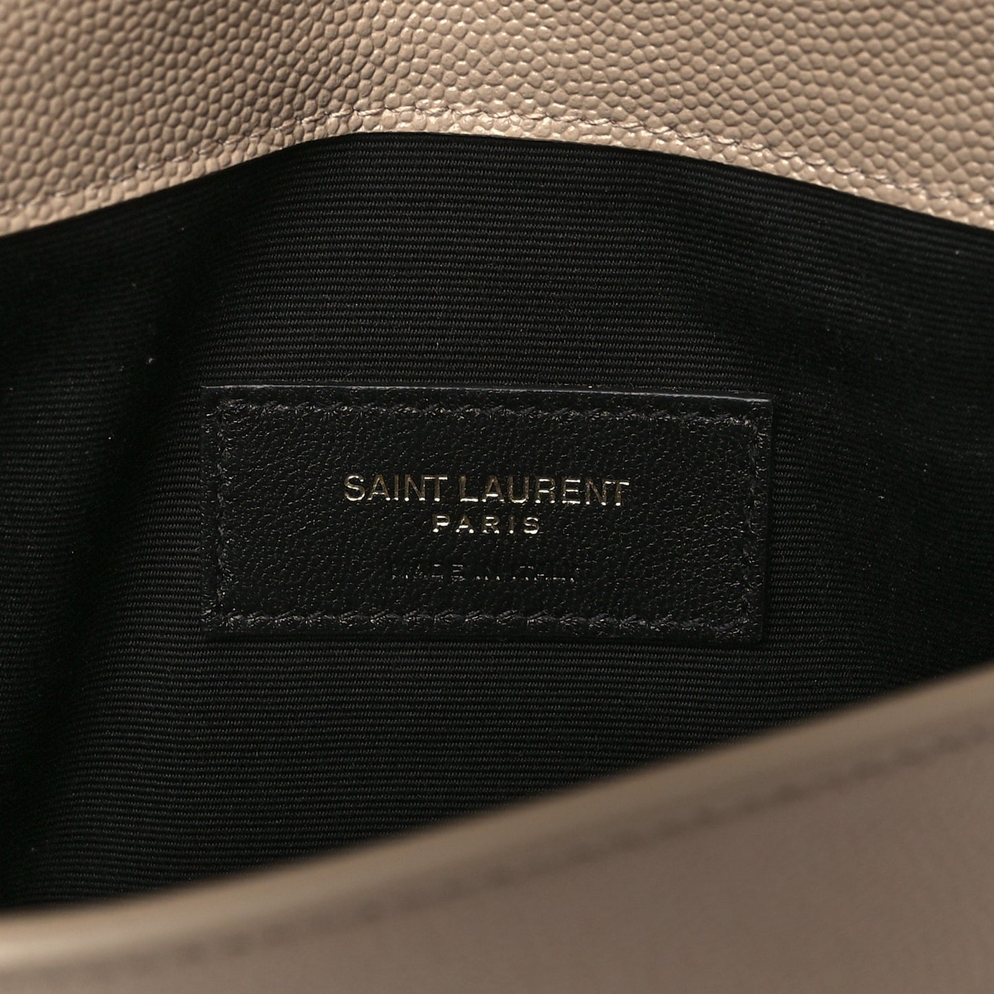 This is an authentic SAINT LAURENT Grain De Poudre Uptown Pouch in Dark Beige. This clutch is crafted of grained calfskin leather in beige and features a facing V-shaped flap with a prominent polished gold YSL logo. The flap opens to a black fabric interior.Follow this item for alerts. Saint Laurent is a registered trademark of Saint Laurent. FASHIONPHILE is not affiliated with Saint Laurent.