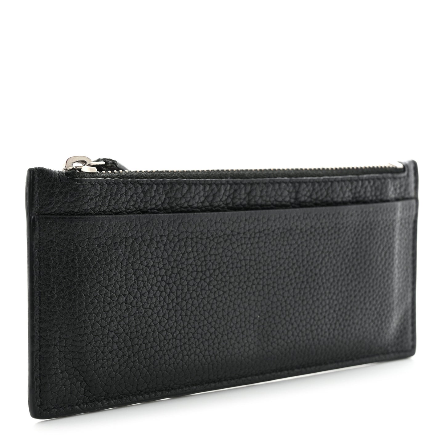 Saint Laurent/ Accessories/ Wallets /Saint Laurent Grained Calfskin 5 Fragments Zip Pouch Card Holder Black
