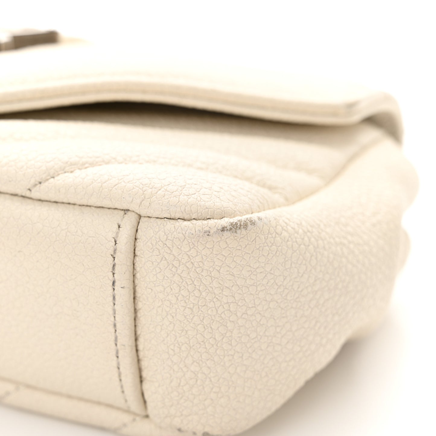 Grained Calfskin Matelassé Chevron Monogram Classic Baby Chain Bag White
