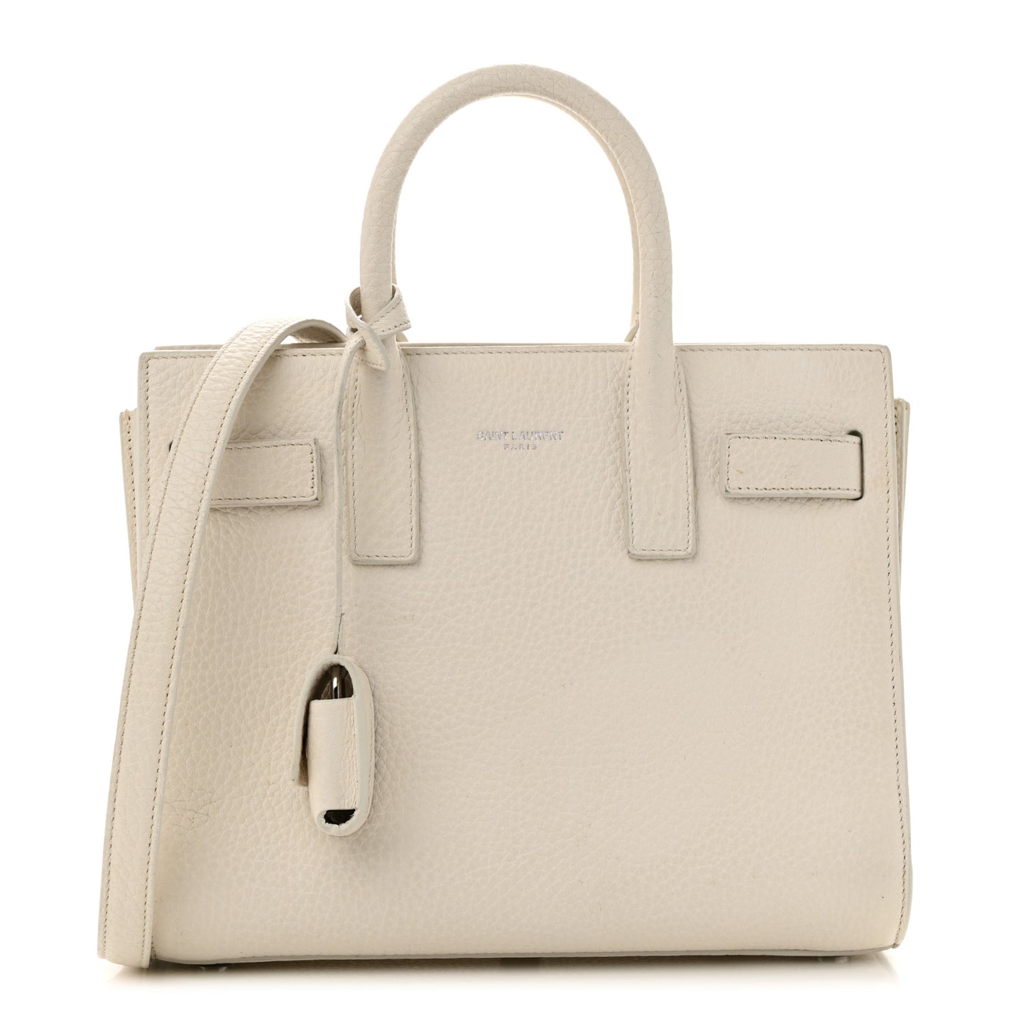 Saint Laurent/ Bags/ Totes /Saint Laurent Grained Calfskin Nano Sac De Jour Dove White