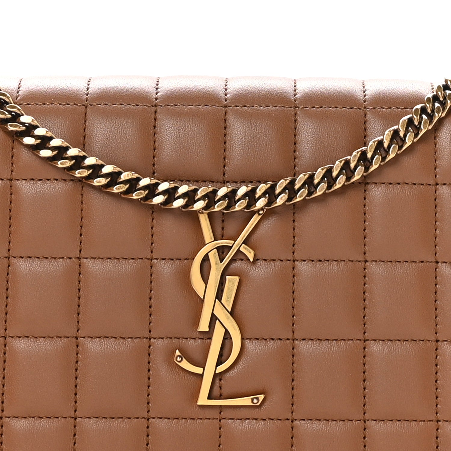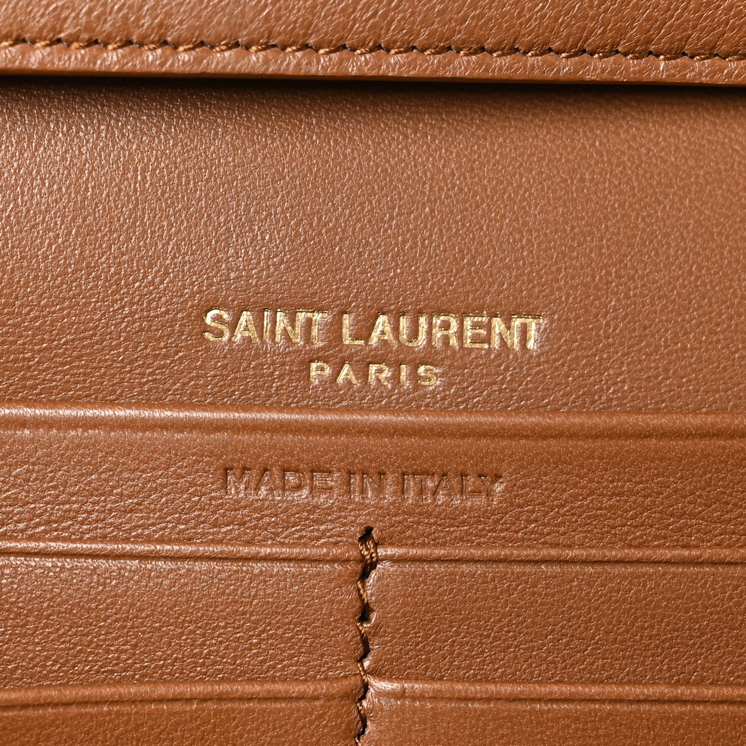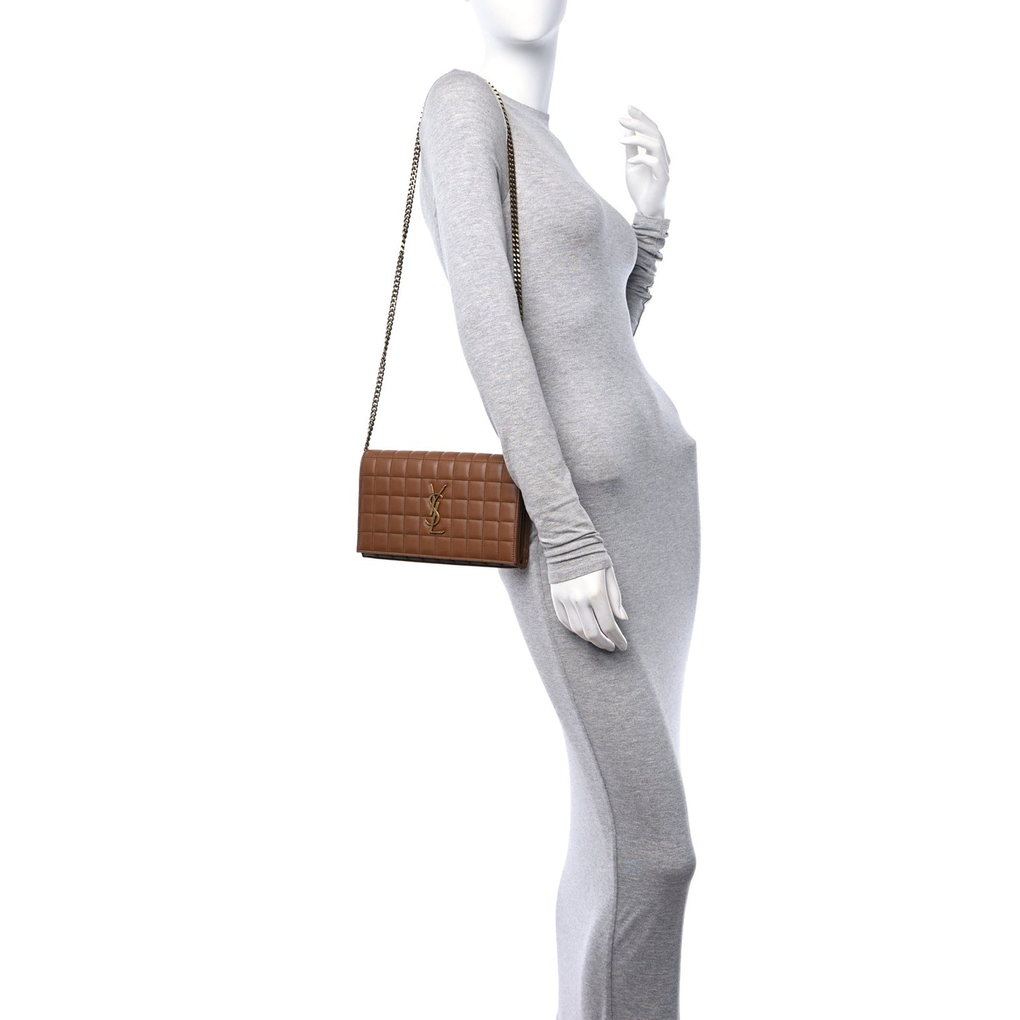 Saint Laurent/ Bags/ Handbags /Saint Laurent Lambskin Carre Quilted Cassandre Chain Wallet Brown