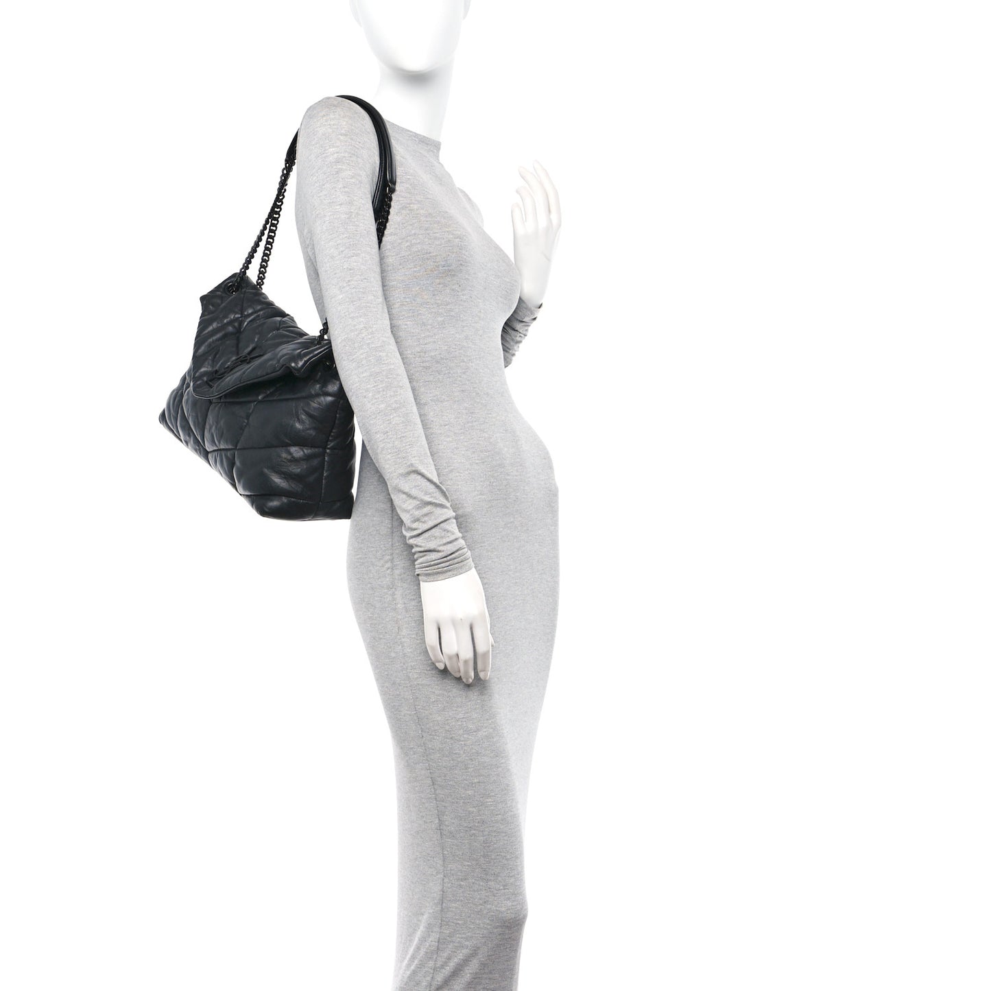 This is an authentic SAINT LAURENT Lambskin Quilted Monogram Monochrome Medium Loulou Puffer Chain Satchel in Black. This elegant shoulder bag is crafted of quilted lambskin leather in black. The bag features black chainlink shoulder straps with black leather shoulder pads and a black hardware YSL emblem on the front. The flap opens with a magnetic snap to a black fabric interior with a zipper pocket.Follow this item for alerts. Saint Laurent is a registered trademark of Saint Laurent. FASHIONPHILE is not affiliated with Saint Laurent.