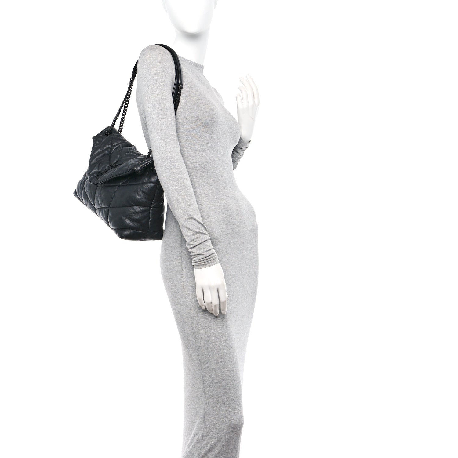 Saint Laurent/ Bags/ Shoulder Bags /Saint Laurent Lambskin Quilted Monogram Monochrome Medium Loulou Puffer Chain Satchel Black