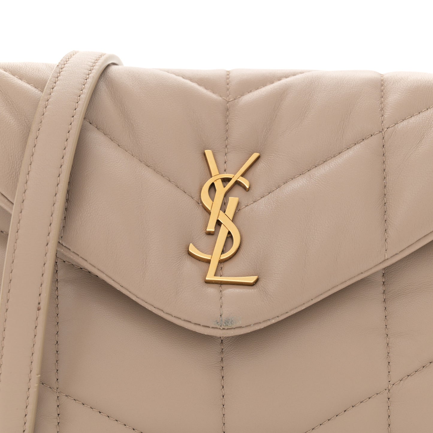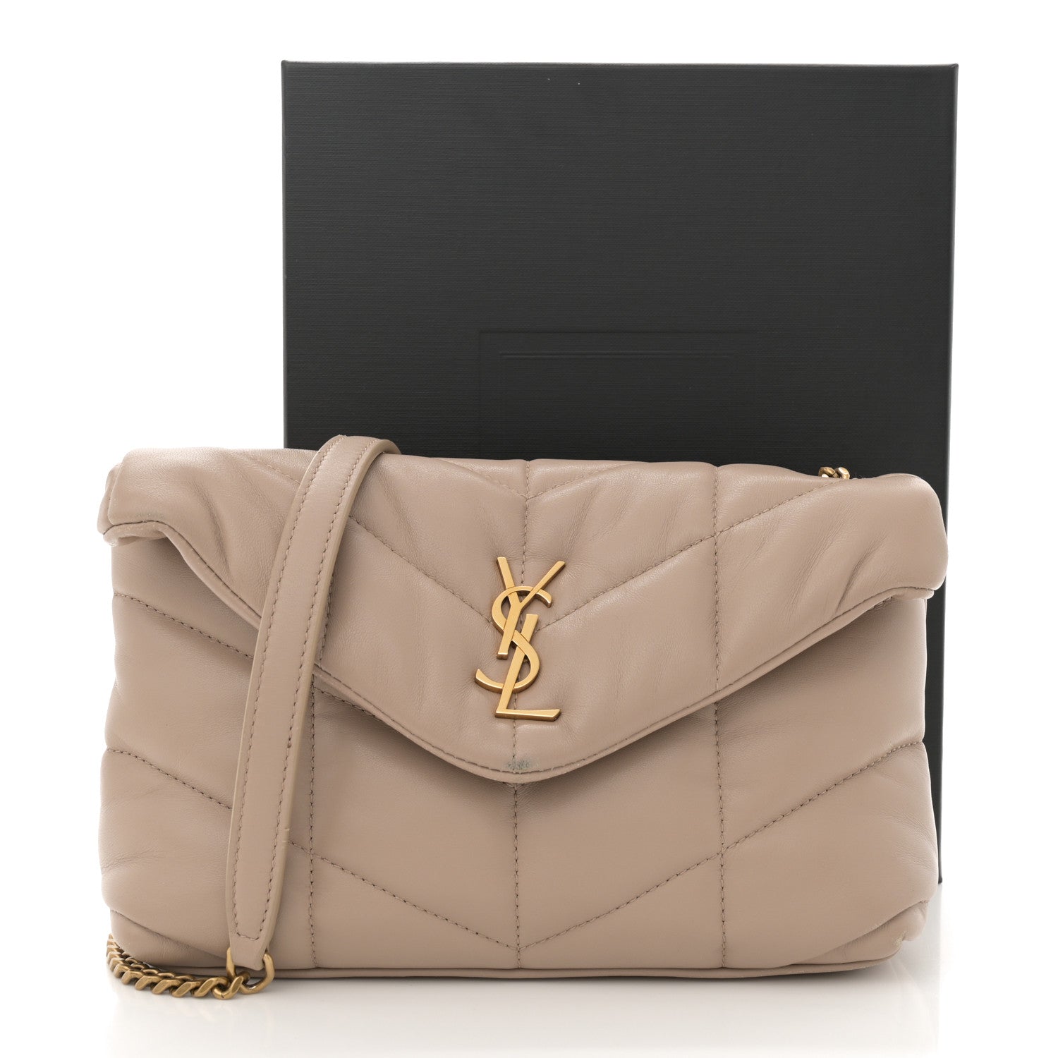 Saint Laurent/ Bags/ Shoulder Bags /Saint Laurent Lambskin Quilted Toy Loulou Puffer Monogram Chain Satchel Dark Beige
