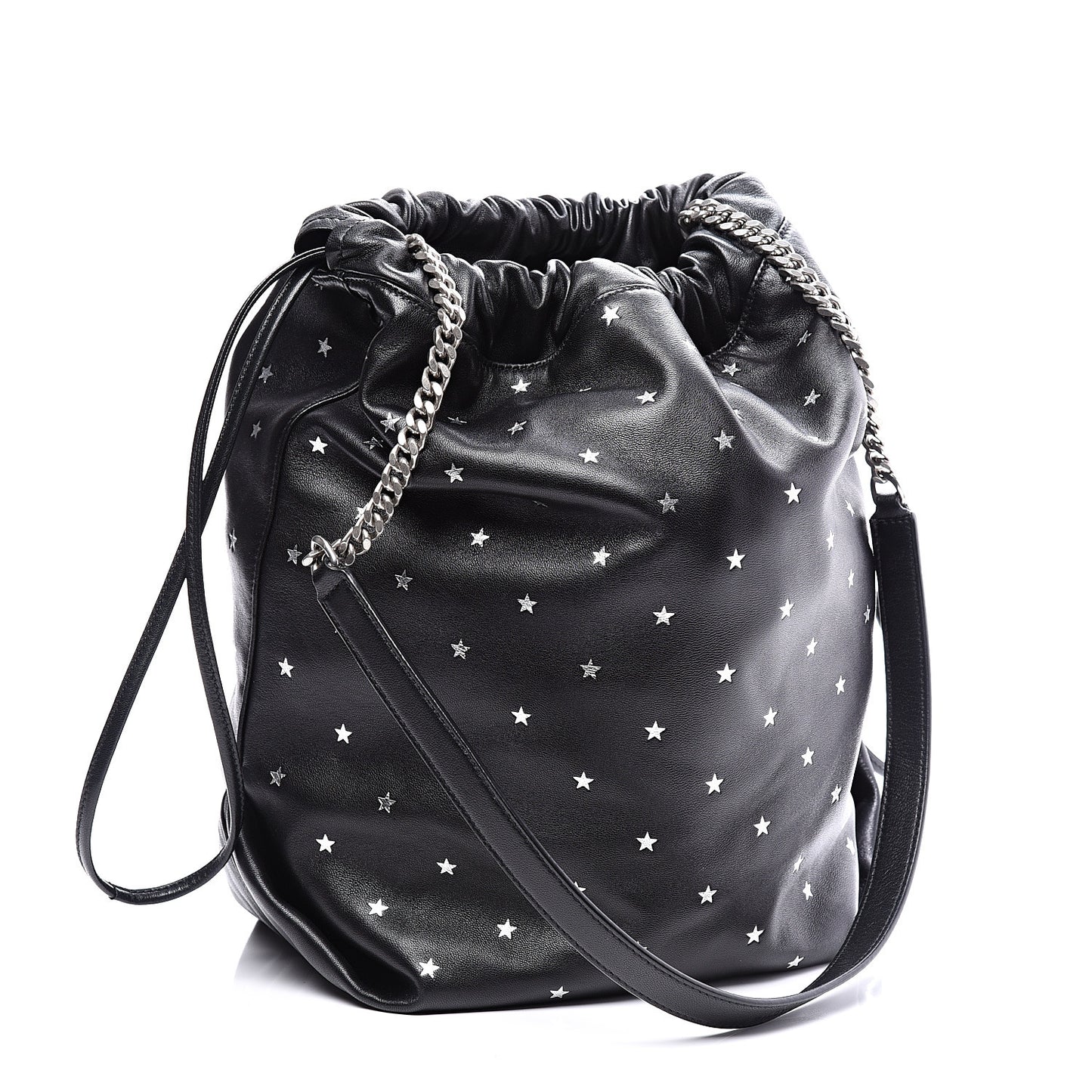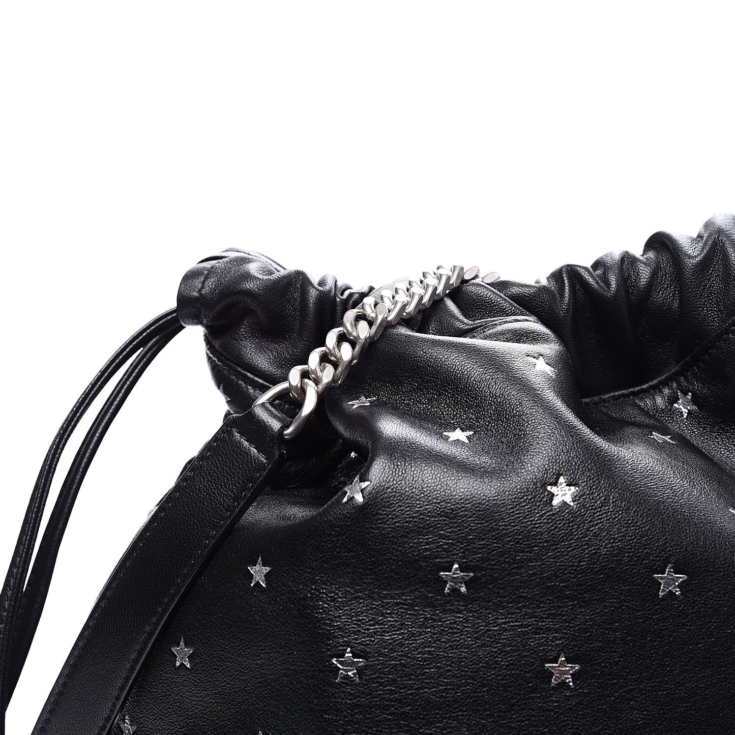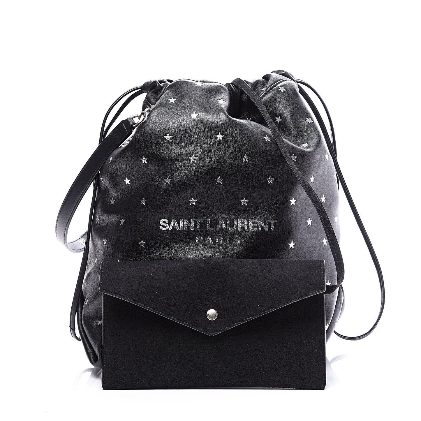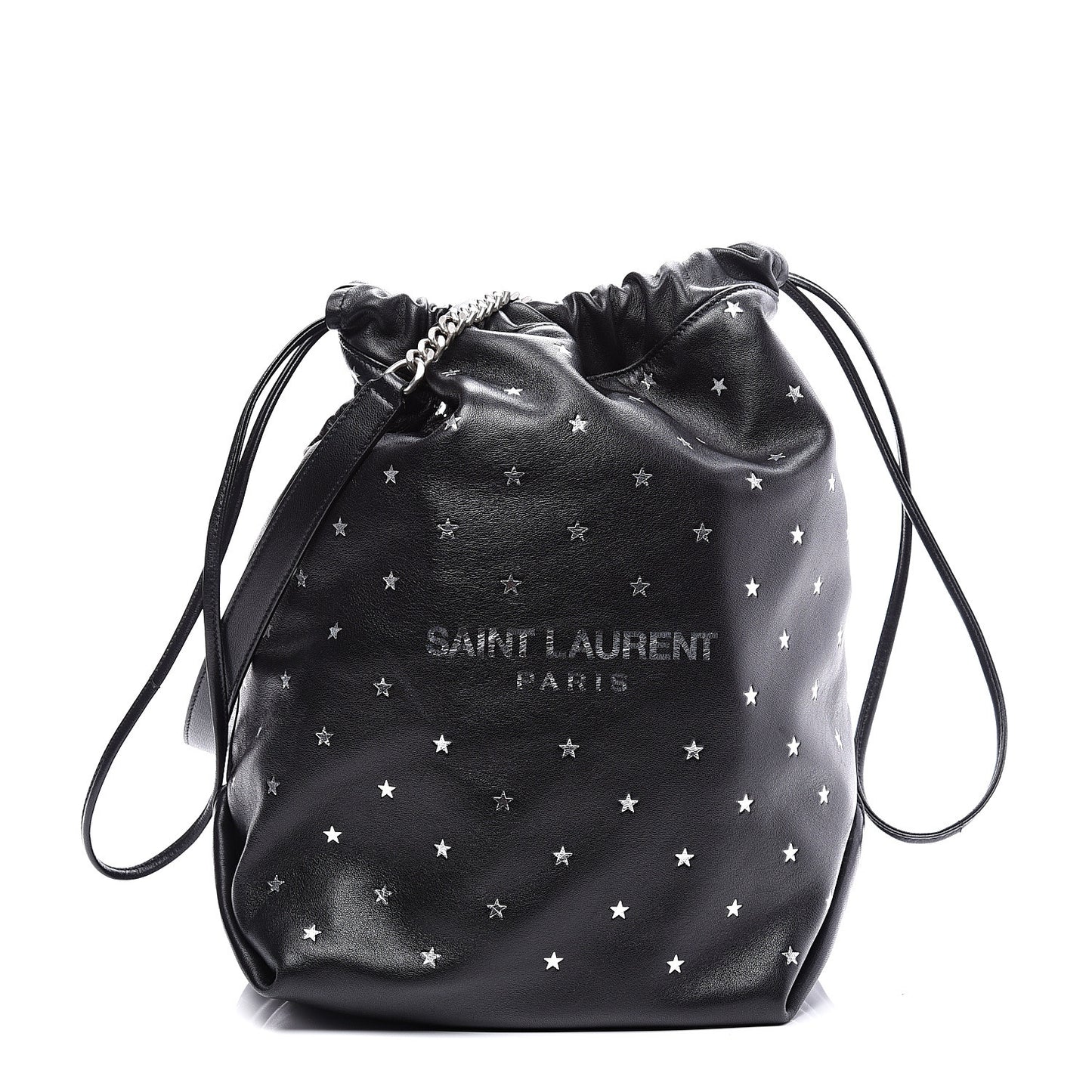 Saint Laurent/ Bags/ Shoulder Bags /Saint Laurent Lambskin Star Printed Teddy Drawstring Bag Black
