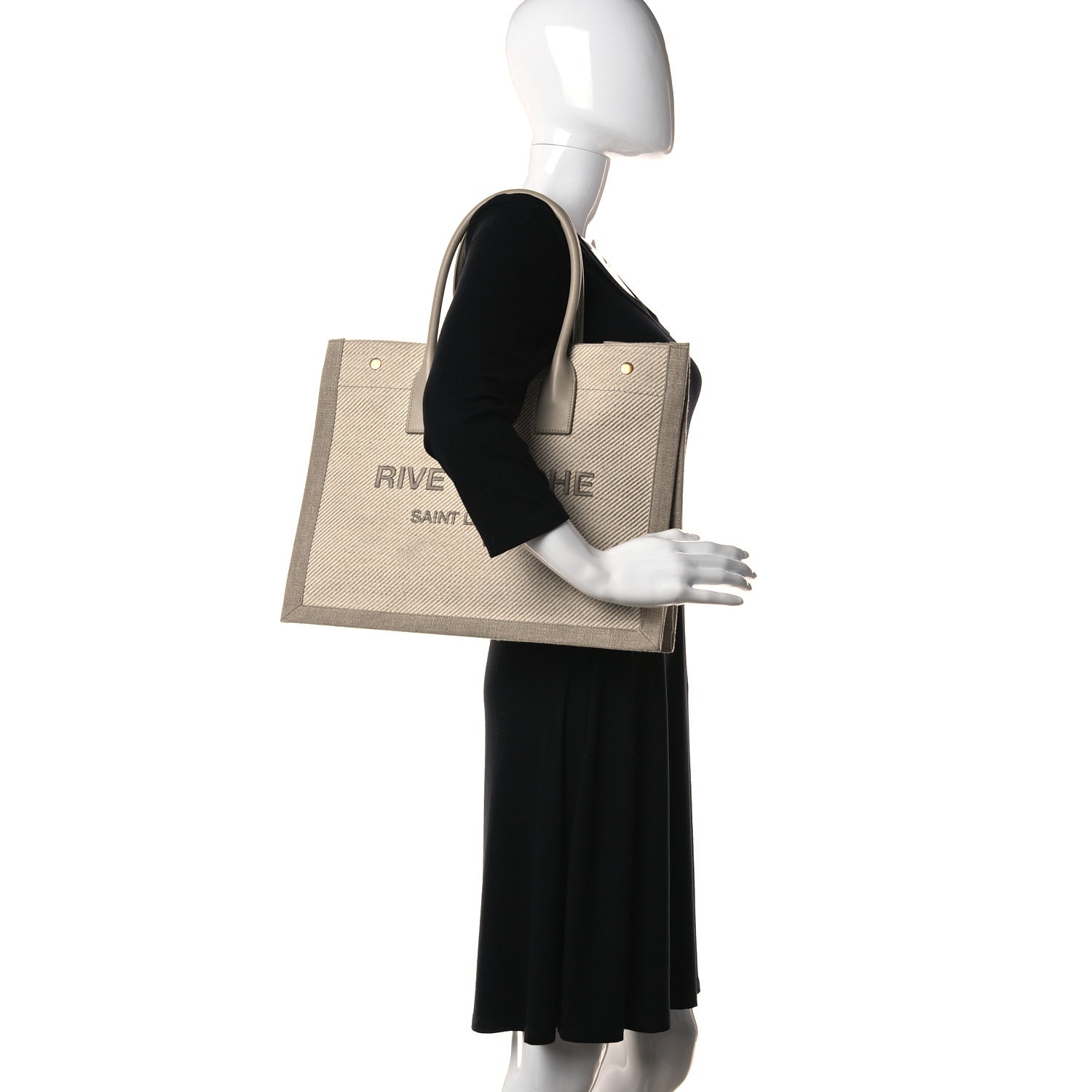 Saint Laurent/ Bags/ Totes /Saint Laurent Linen Calfskin Small Rive Gauche Tote Beige Sea Salt