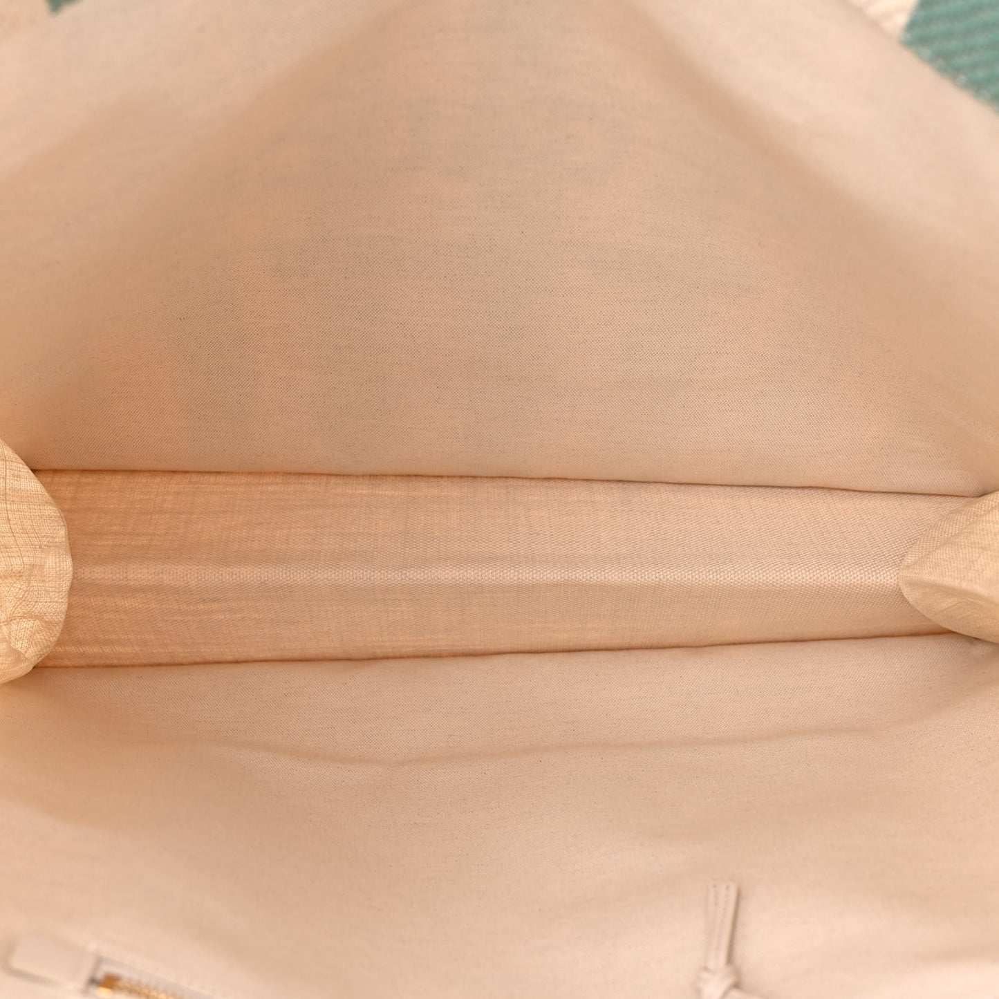 Cotton Linen Calfskin Striped Rive Gauche Tote Water Green