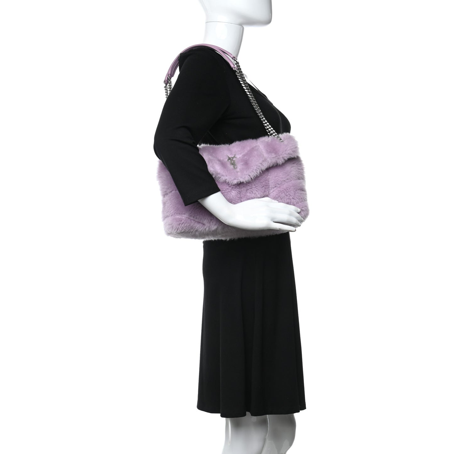 Merino Shearling Lambskin Quilted Small Loulou Puffer Monogram Chain Satchel Lila