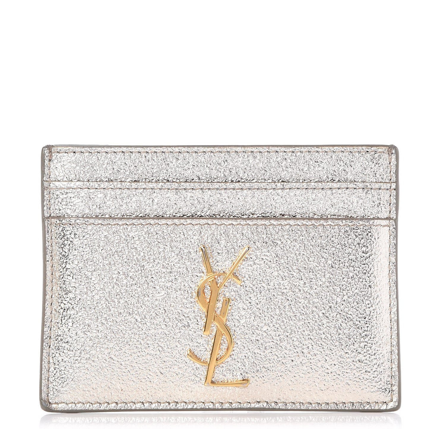 Saint Laurent/ Accessories/ Wallets /Saint Laurent Metallic Calfskin Monogram Credit Card Case Gold