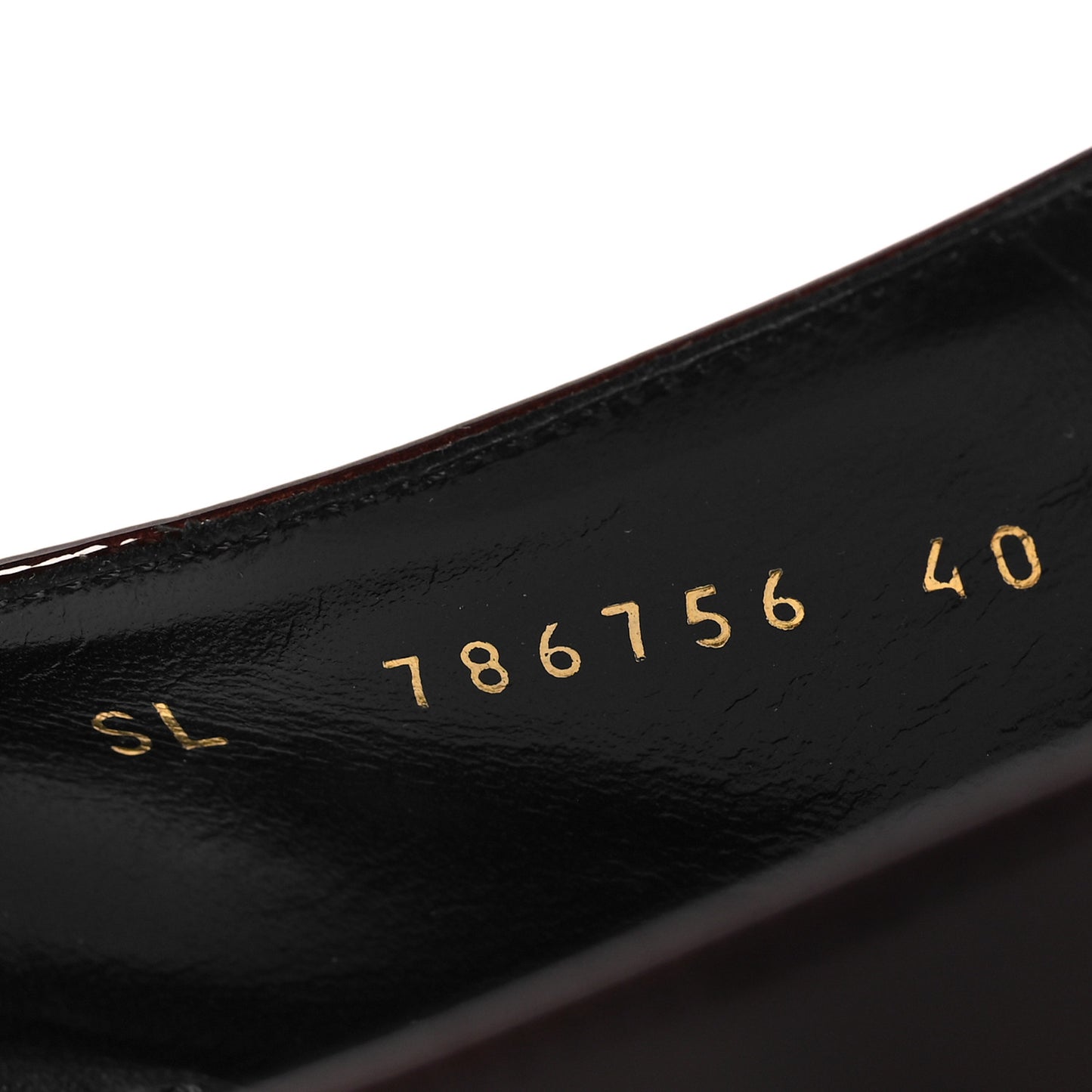This is an authentic pair of SAINT LAURENT Patent Calfskin Dune Slingback Pumps size 40 in Wood. These chic heels are crafted of burgundy polished leather, feature a sharp toe and a 4.5 inch heel.Follow this item for alerts. Saint Laurent is a registered trademark of Saint Laurent. FASHIONPHILE is not affiliated with Saint Laurent.