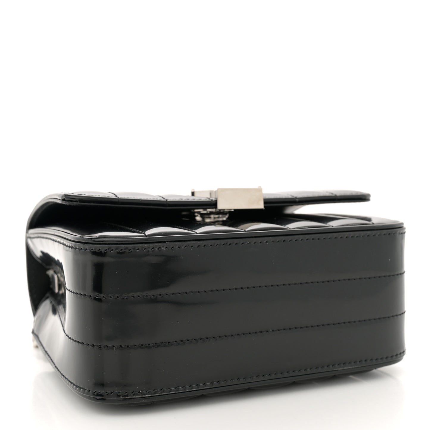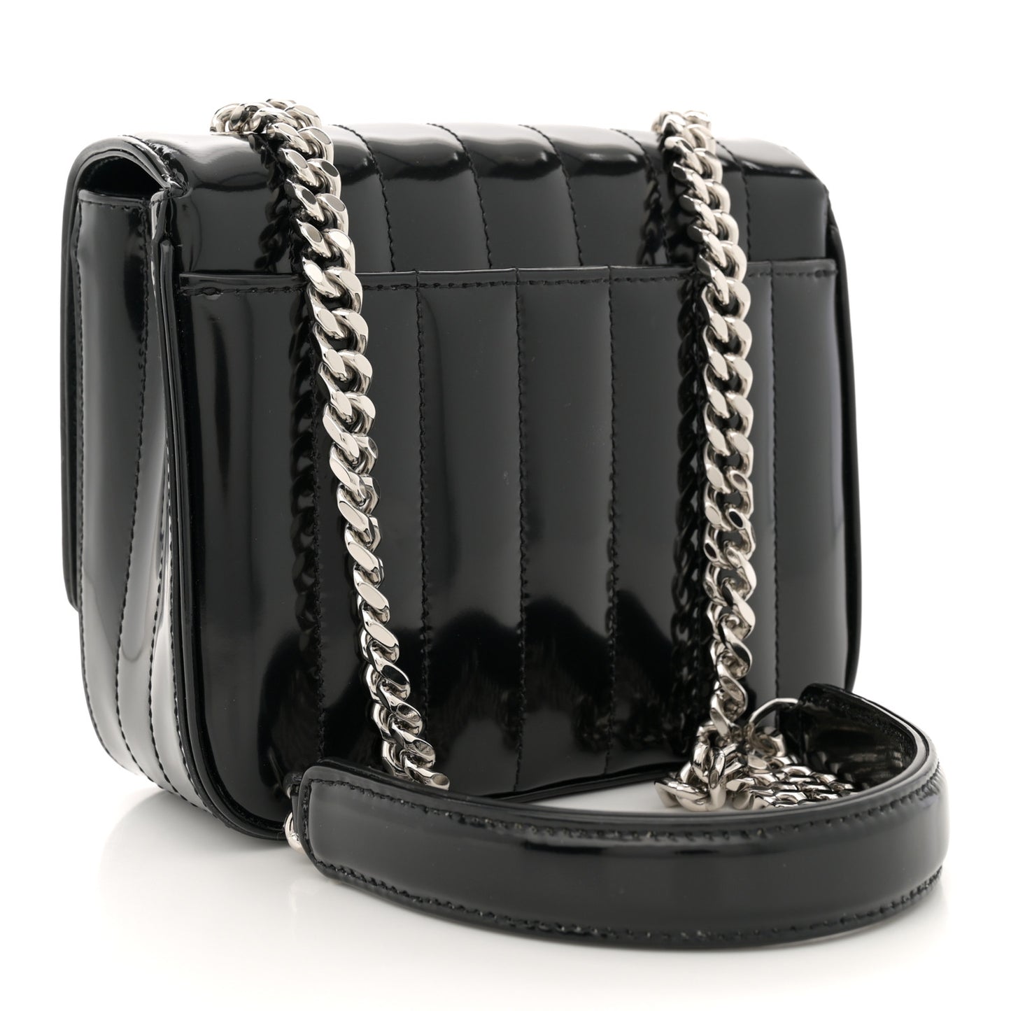 Patent Calfskin Matelasse Monogram Small Vicky Chain Bag Black