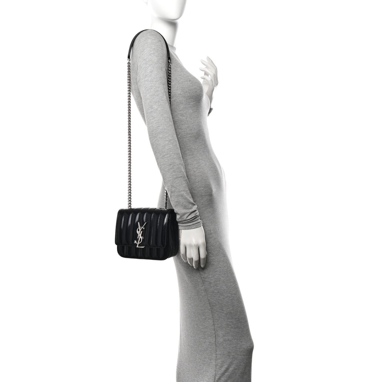 Saint Laurent/ Bags/ Handbags /Saint Laurent Patent Calfskin Matelasse Monogram Small Vicky Chain Bag Black