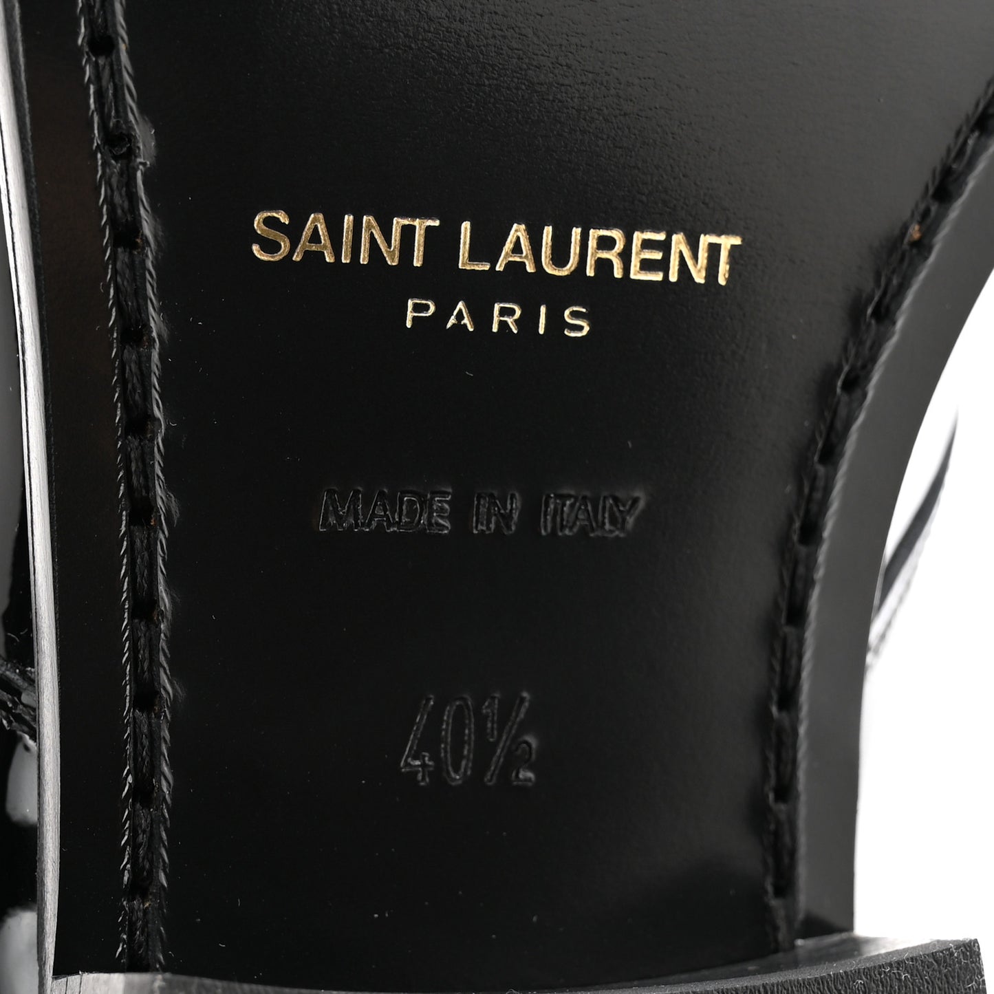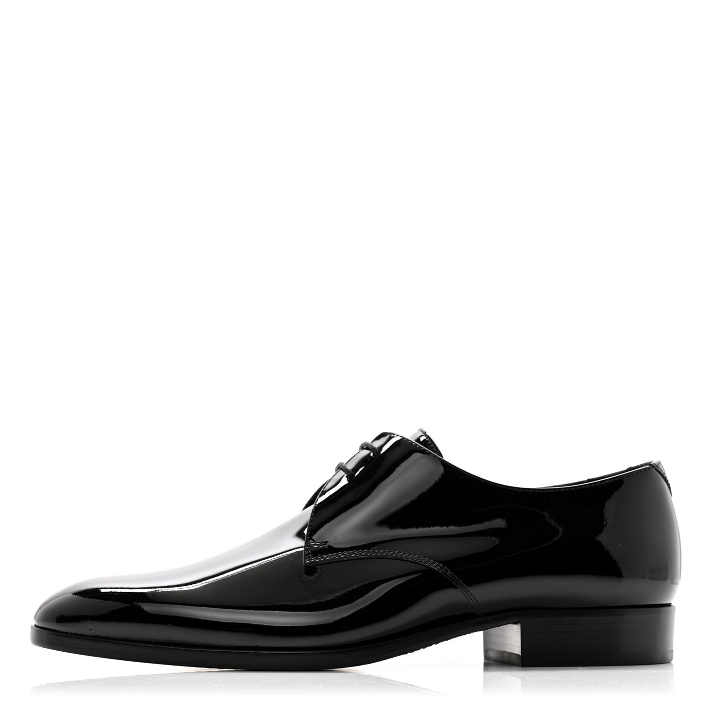 This is an authentic pair of SAINT LAURENT Patent Lace Up Wyatt 25 Derby Shoes size 40 in Black. These shoes are made out of Calfskin leather in black. They feature a round toe and black laces.Follow this item for alerts. Saint Laurent is a registered trademark of Saint Laurent. FASHIONPHILE is not affiliated with Saint Laurent.