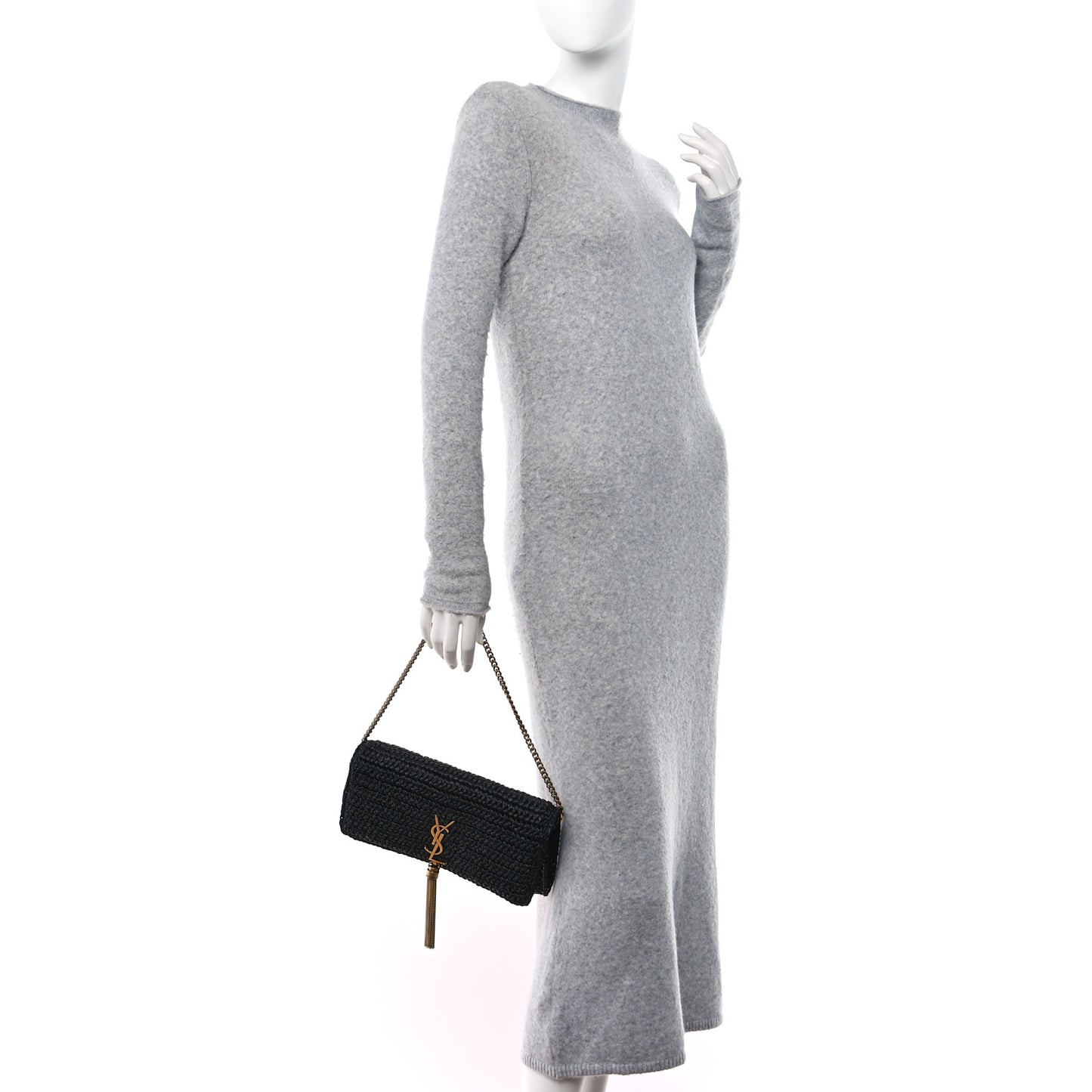 This is an authentic SAINT LAURENT Raffia Monogram Tassel Kate 99 in Black. This stylish bag is crafted of raffia in a black. It features an interchangeable black leather shoulder strap and gold chain strap. The front flap has a signature gold YSL logo with a hanging tasse that opens to a black leather interior.Follow this item for alerts. Saint Laurent is a registered trademark of Saint Laurent. FASHIONPHILE is not affiliated with Saint Laurent.