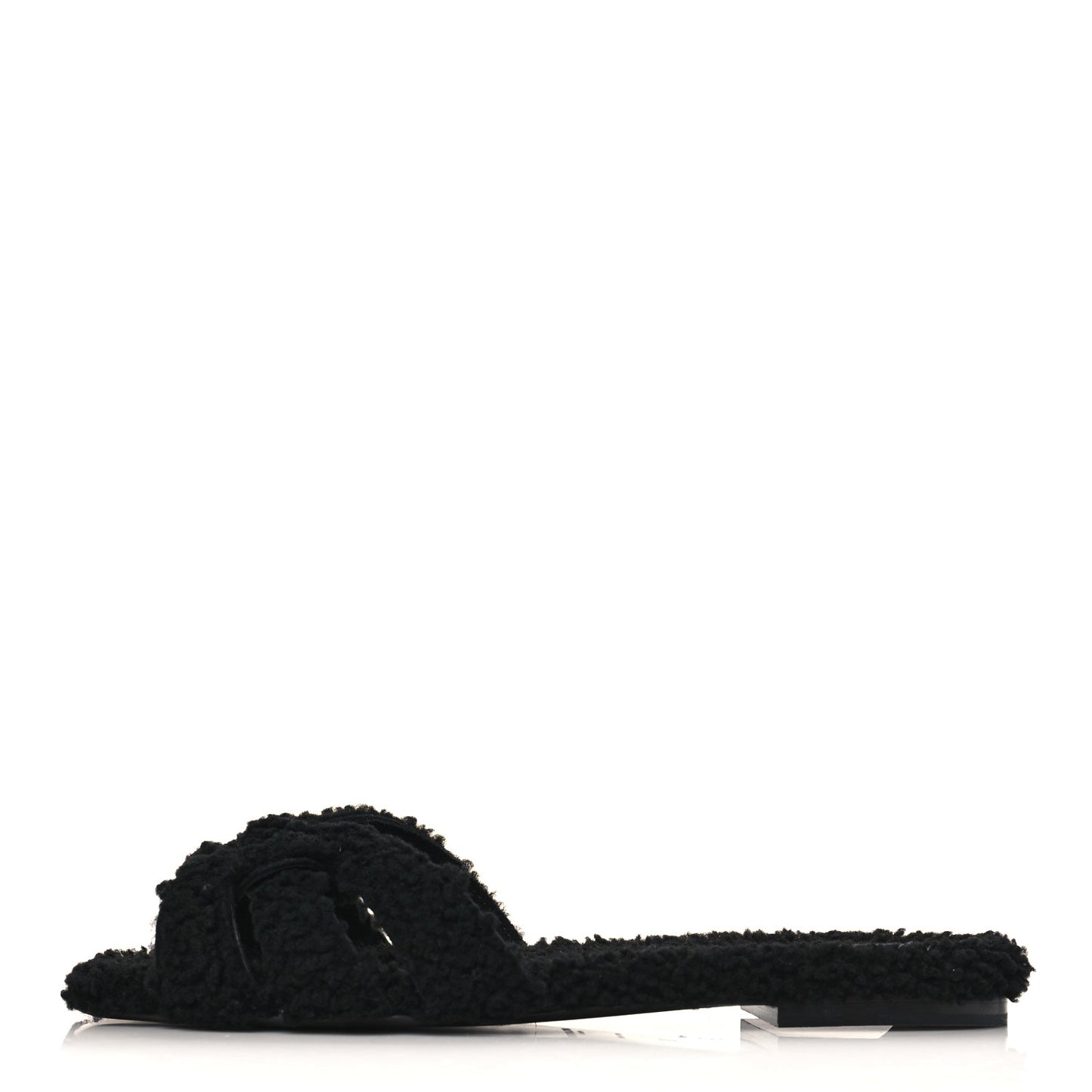 Saint Laurent/ Accessories/ Shoes /Saint Laurent Shearling Tribute Flat Mules 39 black