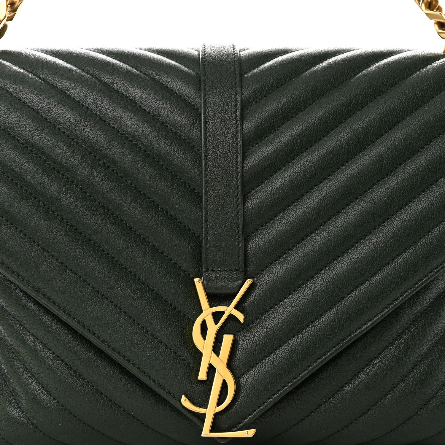Saint Laurent/ Bags/ Shoulder Bags /Saint Laurent Sheepskin Matelasse Chevron Monogram Large College Satchel Dark Green