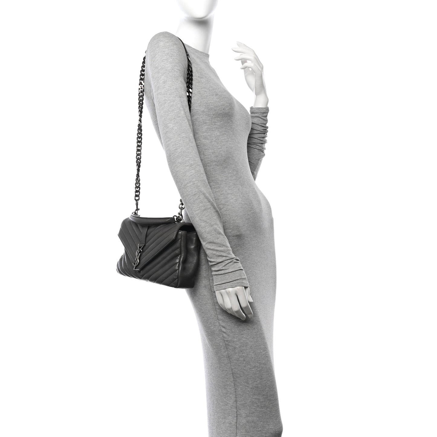 Saint Laurent/ Bags/ Shoulder Bags /Saint Laurent Sheepskin Matelasse Chevron Monogram Medium College Bag Light Coal