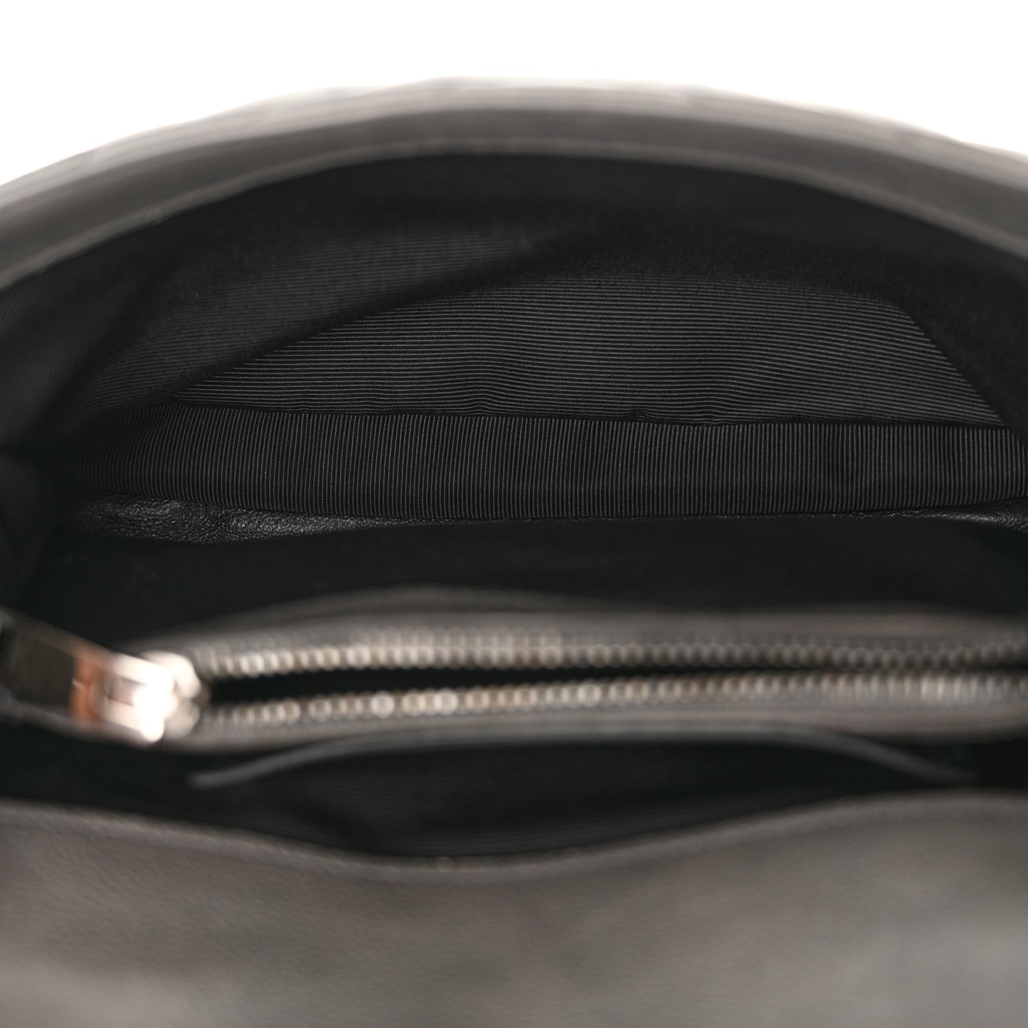 Sheepskin Matelasse Chevron Monogram Medium College Bag Light Coal