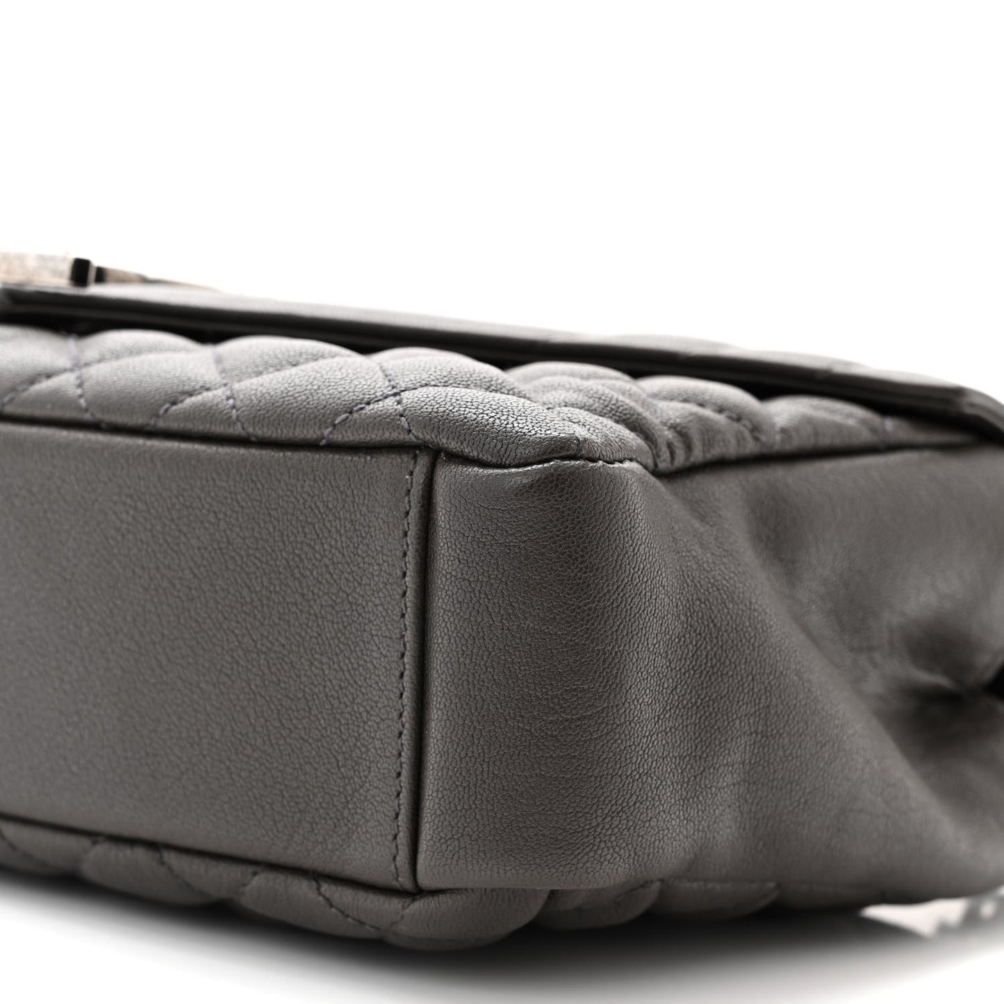 Sheepskin Tri-Quilt Monogram Medium College Bag Coal