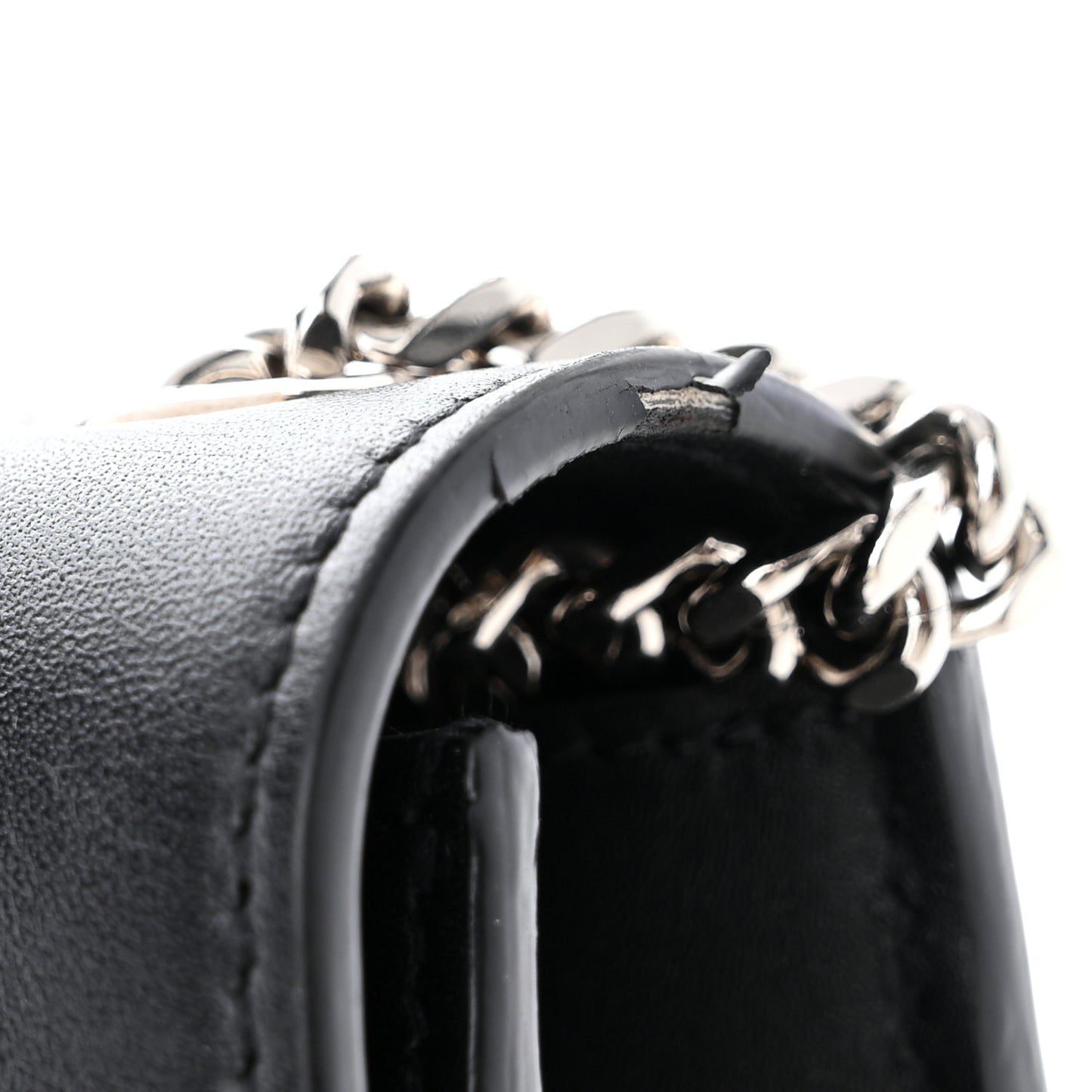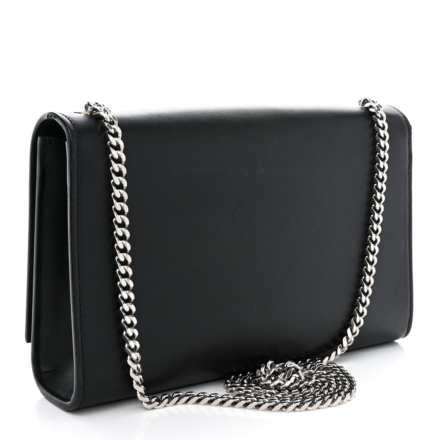 This is an authentic SAINT LAURENT Smooth Calfskin Medium Classic Monogram Kate Tassel Satchel in Black. This ultra stylish evening clutch is finely crafted of smooth calfskin leather. The bag features a silver chain shoulder strap and a front flap with a silver YSL logo and a hanging tassel pendant of miniature gold chains. The flap opens to a black fabric interior with a patch pocket.Follow this item for alerts. Saint Laurent is a registered trademark of Saint Laurent. FASHIONPHILE is not affiliated with Saint Laurent.