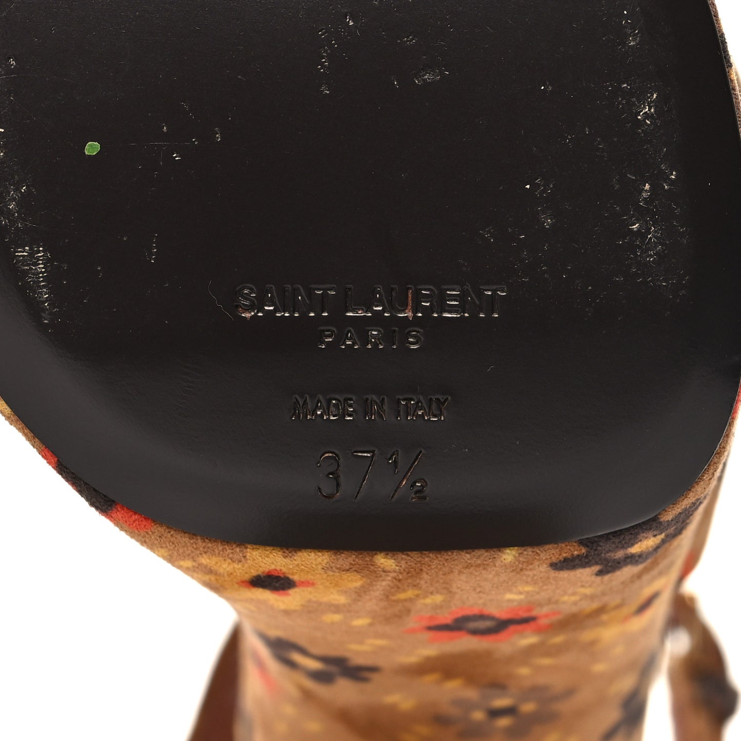 This is an authentic pair of SAINT LAURENT Suede Bianca Flower 85 Platform Sandals size 78.5 in Tan. These chic sandals are crafted of tan suede with a brown and red flower print. They feature a knotted toe strap, wrap-around ankle straps, and a 5.25-inch block heel.Follow this item for alerts. Saint Laurent is a registered trademark of Saint Laurent. FASHIONPHILE is not affiliated with Saint Laurent.