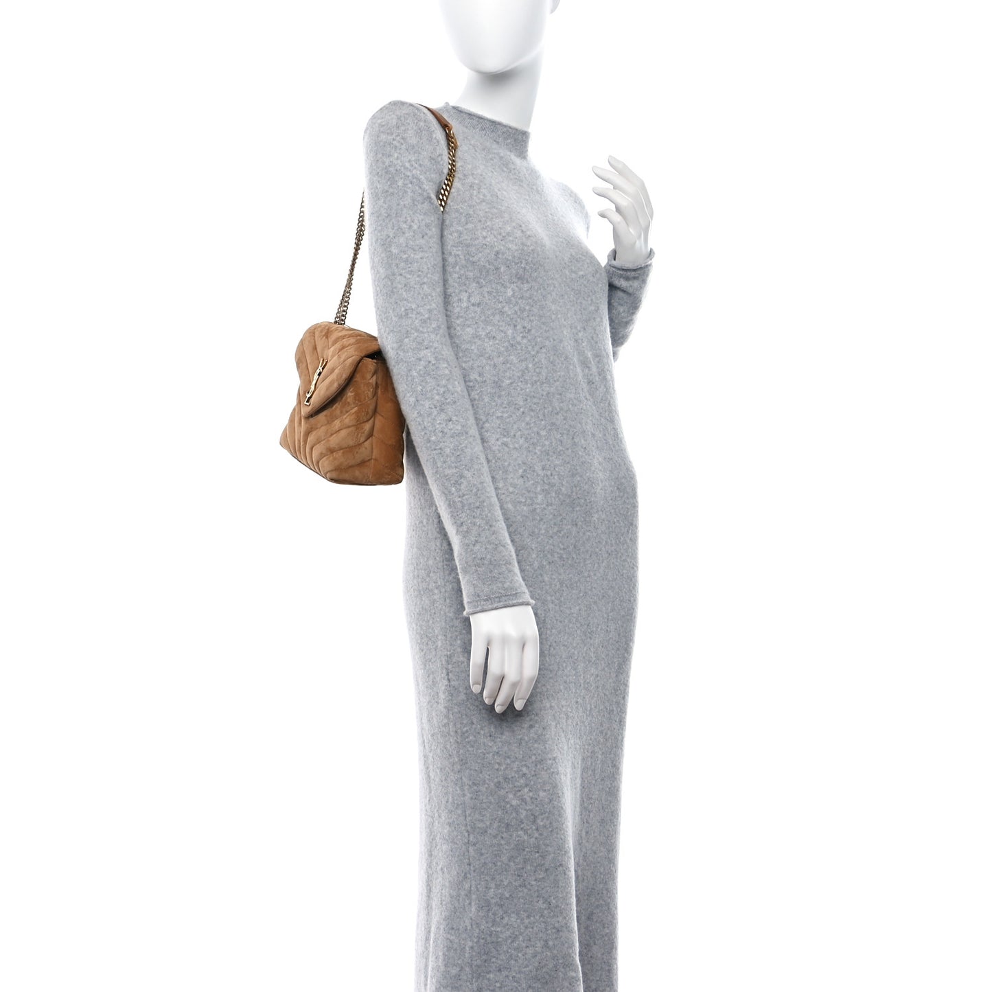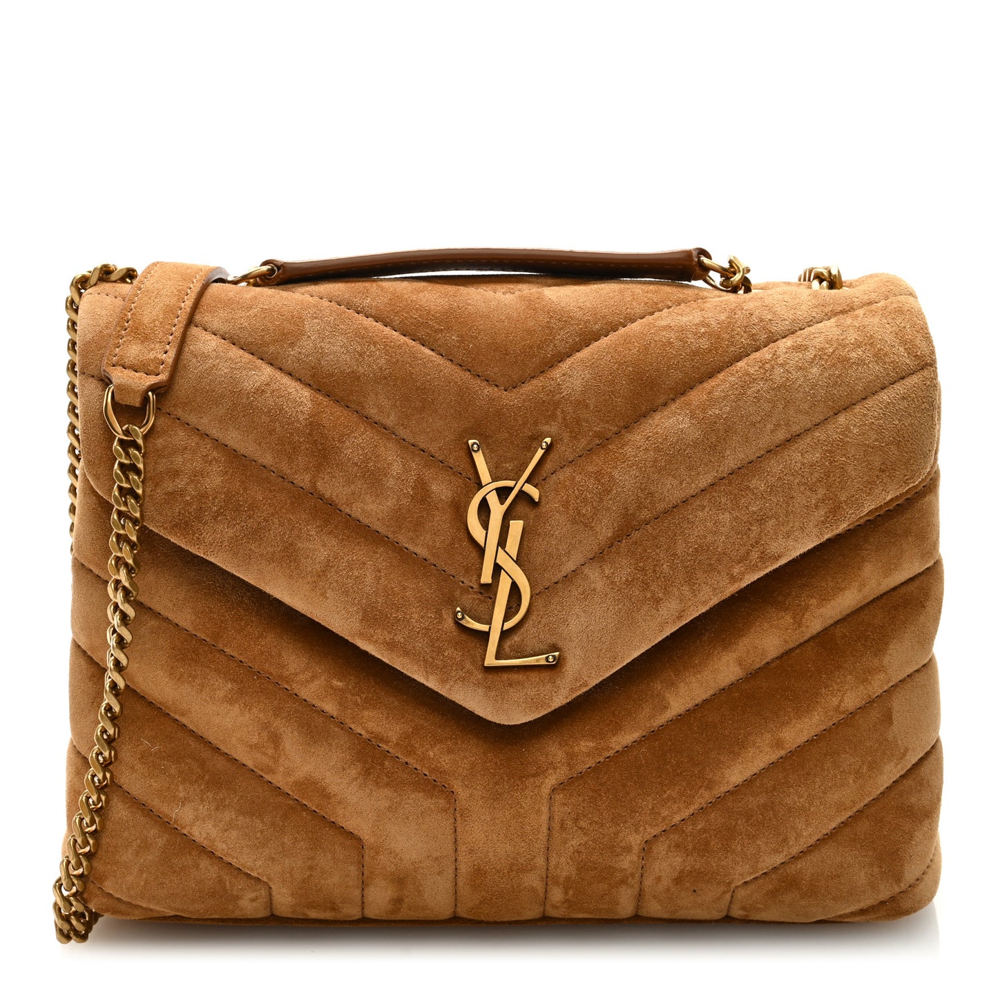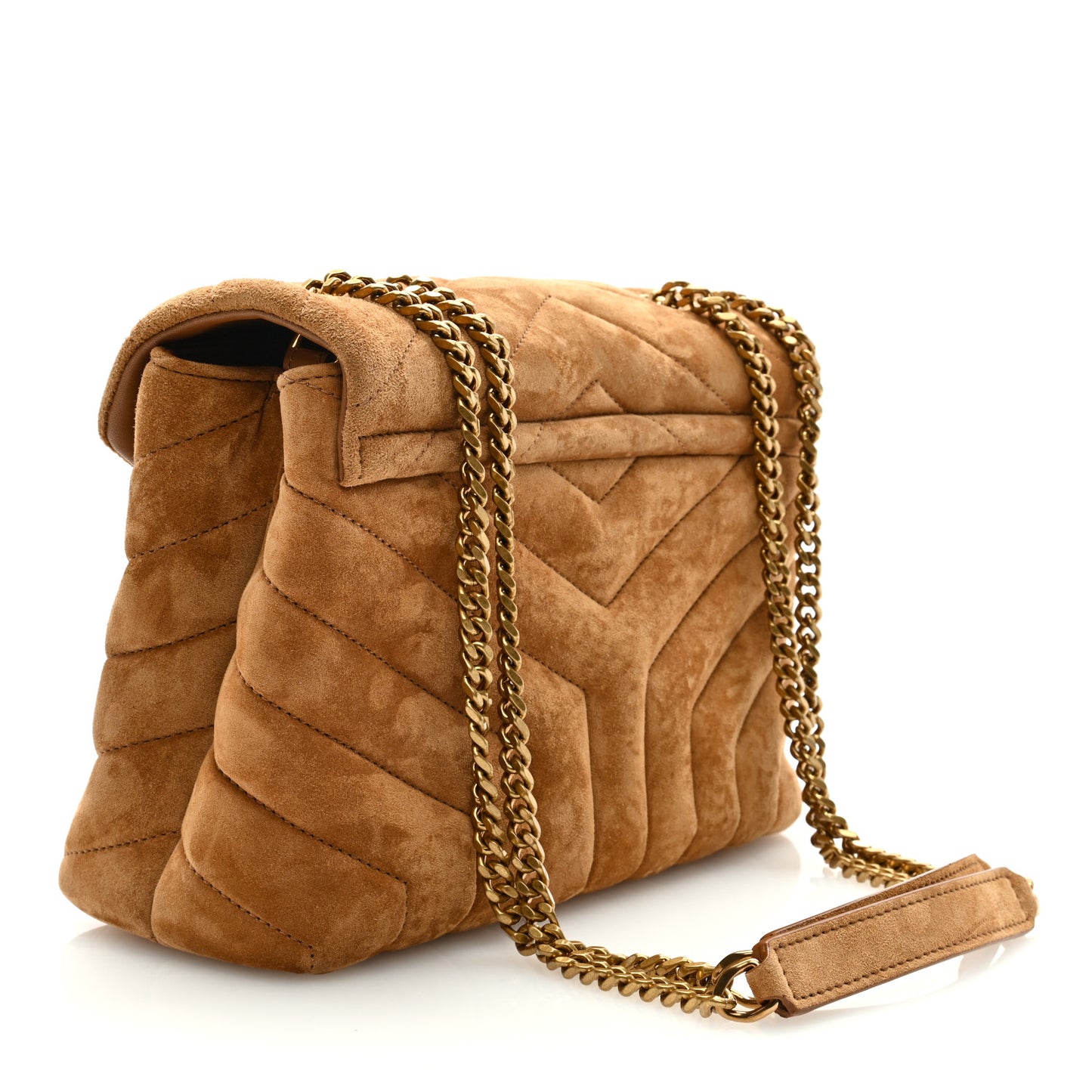 Saint Laurent/ Bags/ Handbags /Saint Laurent Suede Calfskin Y Quilted Monogram Small Loulou Chain Satchel Cinnamon