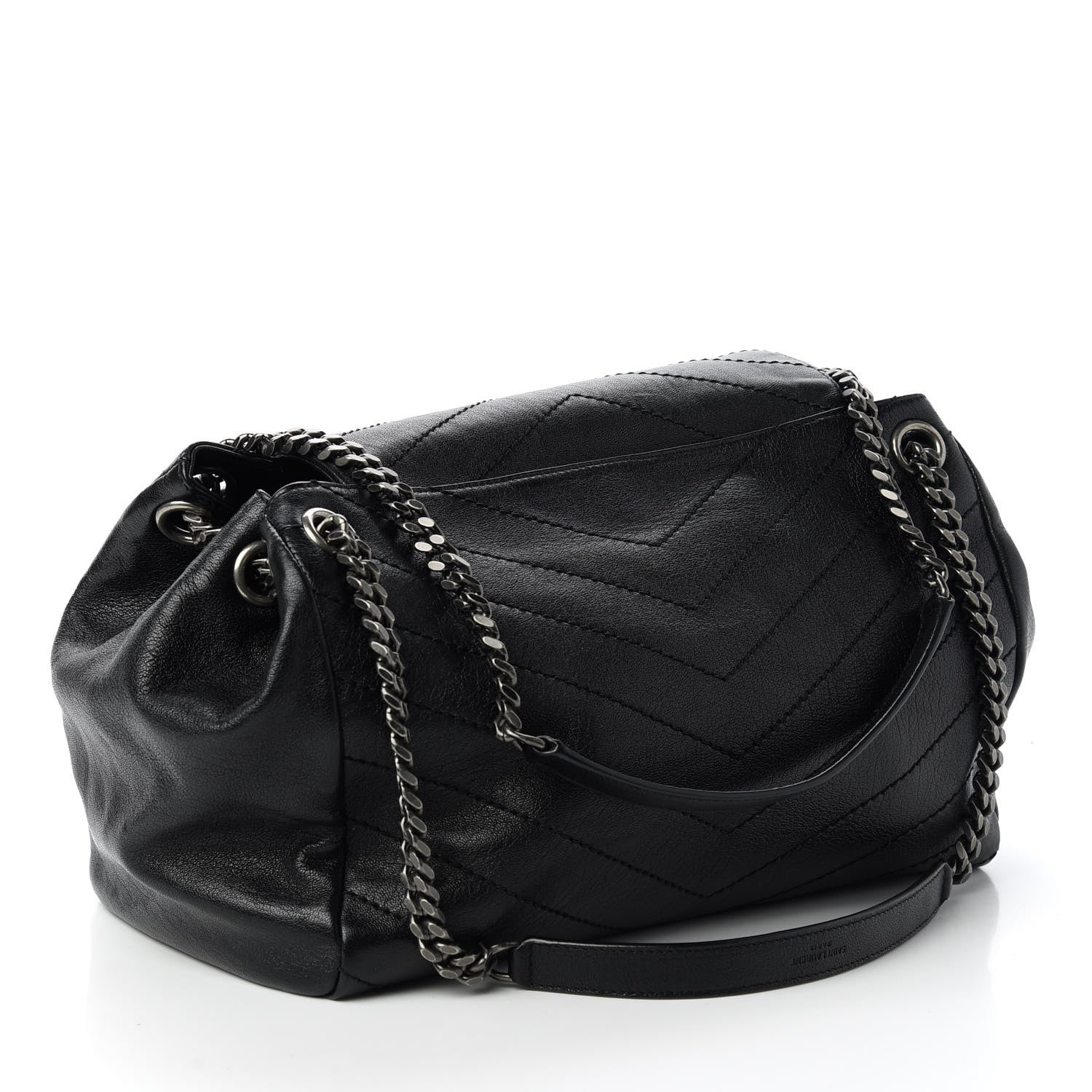 Saint Laurent/ Bags/ Shoulder Bags /Saint Laurent Vintage Lambskin Chevron Monogram Medium Nolita Black