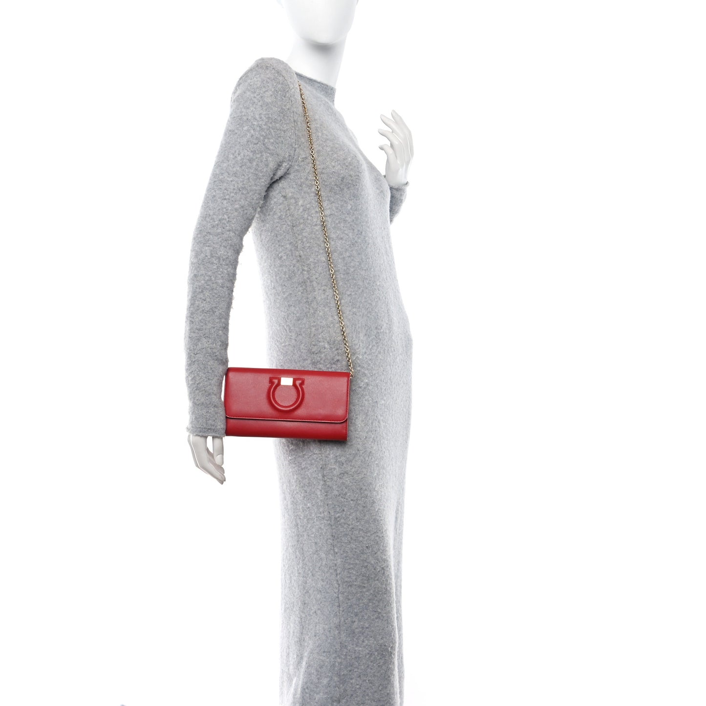 Salvatore Ferragamo/ Bags/ Handbags /Salvatore Ferragamo Calfskin City Wallet On Chain Red