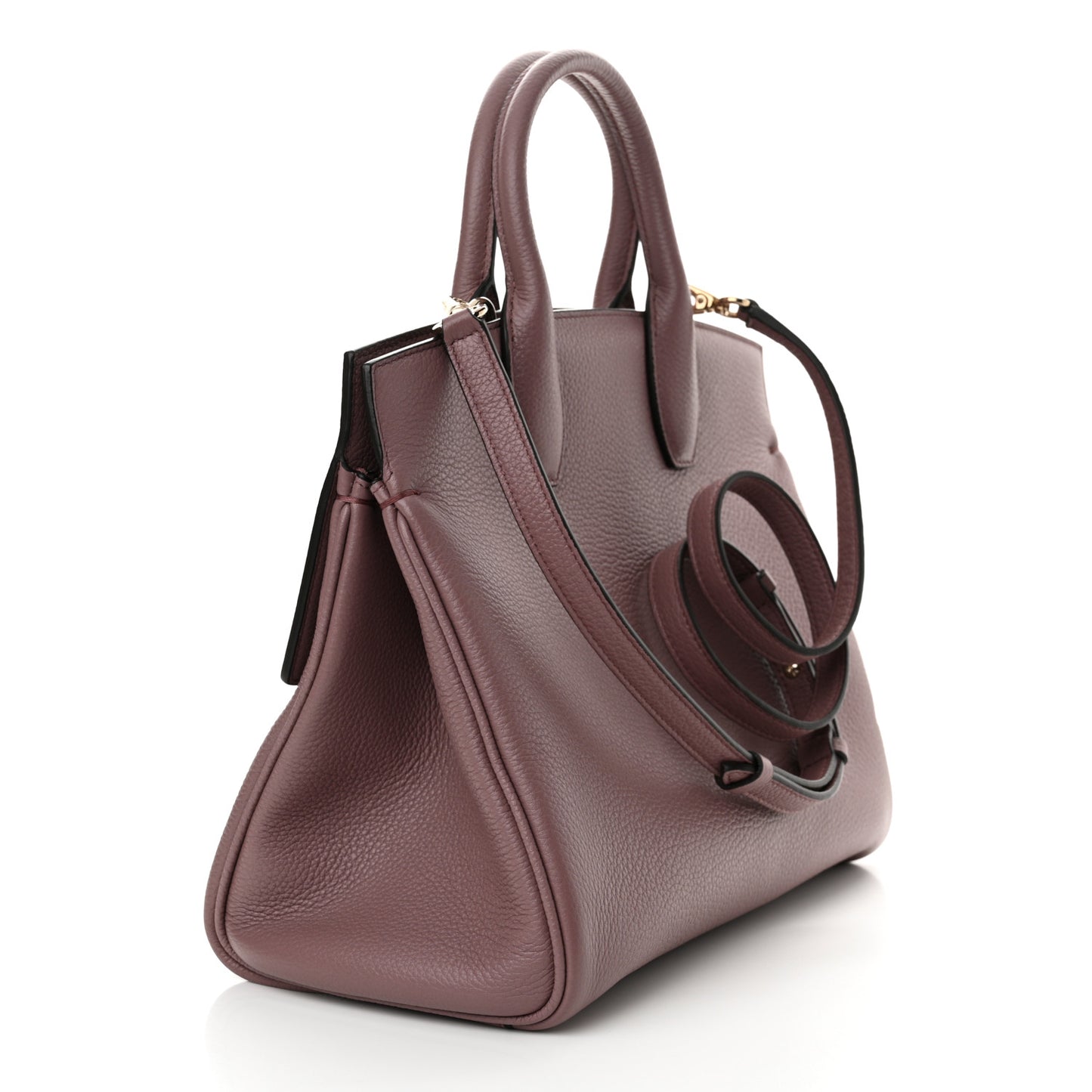 This is an authentic SALVATORE FERRAGAMO Calfskin The Studio Bag in Cinder Rose. This stylish top handle bag is crafted of calfskin leather in light rose with brass gold hardware, rolled leather top handles and an adjustable shoulder strap. The bag opens to a matching leather interior with a snap-in zipper pouch.Follow this item for alerts. Salvatore Ferragamo is a registered trademark of Salvatore Ferragamo. FASHIONPHILE is not affiliated with Salvatore Ferragamo.