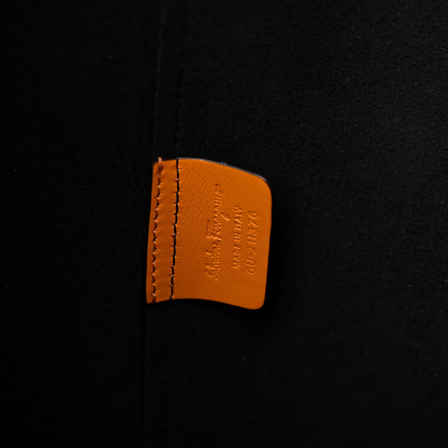 This is an authentic SALVATORE FERRAGAMO Calfskin Travel Tote Olivello. The bag features a top handle and a gold lock. The flap opens to a black fabric interior with a removable pouch.Follow this item for alerts. Salvatore Ferragamo is a registered trademark of Salvatore Ferragamo. FASHIONPHILE is not affiliated with Salvatore Ferragamo.