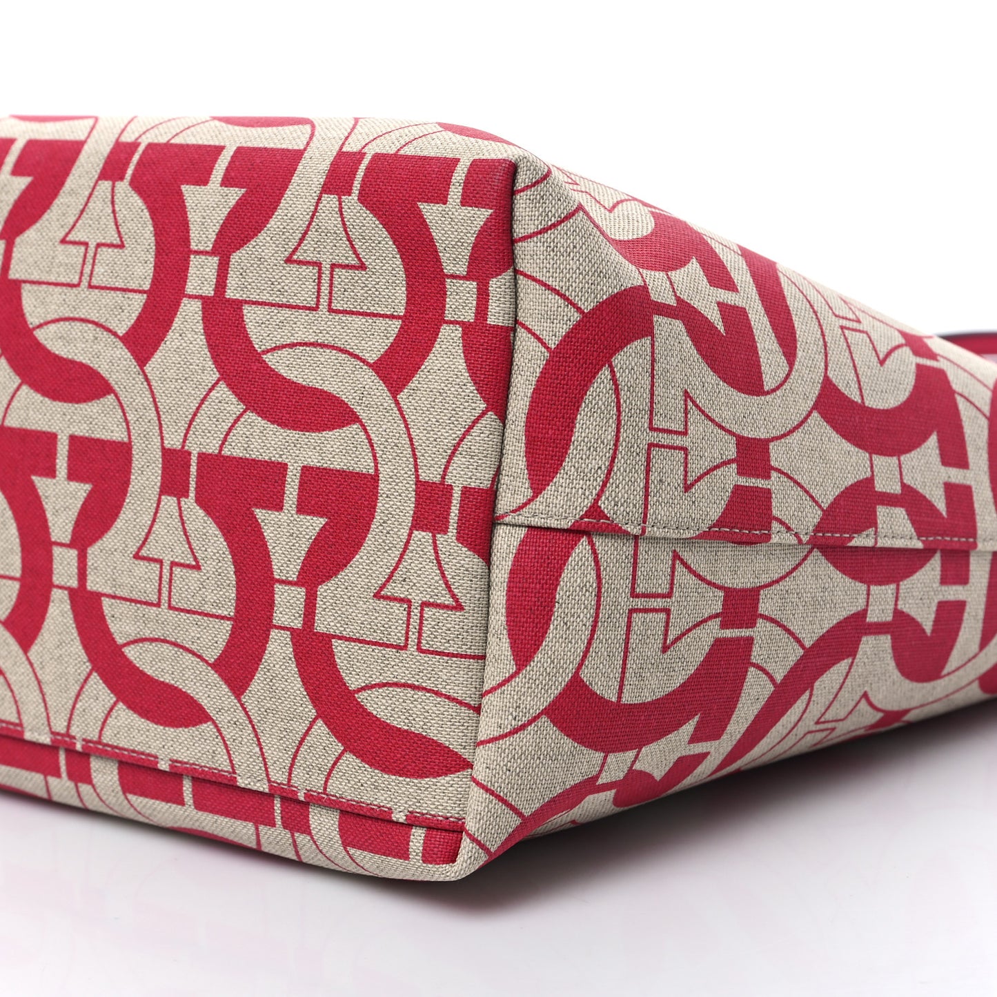 Salvatore Ferragamo/ Bags/ Totes /Salvatore Ferragamo Canvas Calfskin Gancini Tote Red Beige