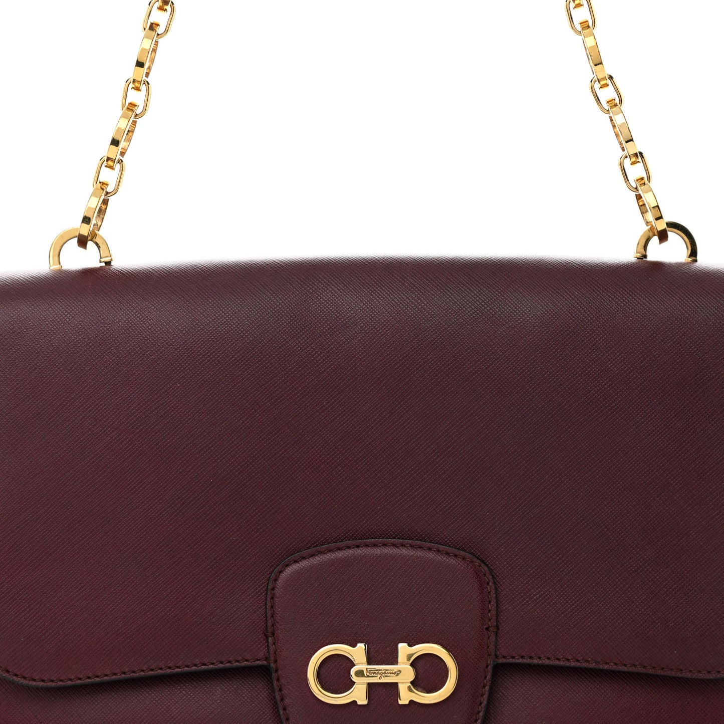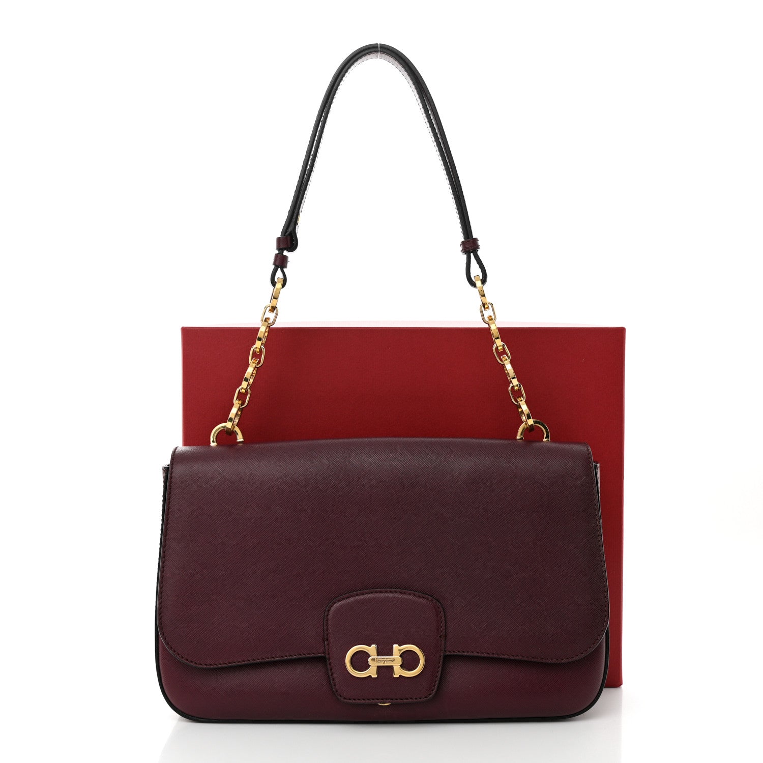 Salvatore Ferragamo/ Bags/ Clutch & Evening /Salvatore Ferragamo Hammered Calfskin Gancini Bree Flap Barolo