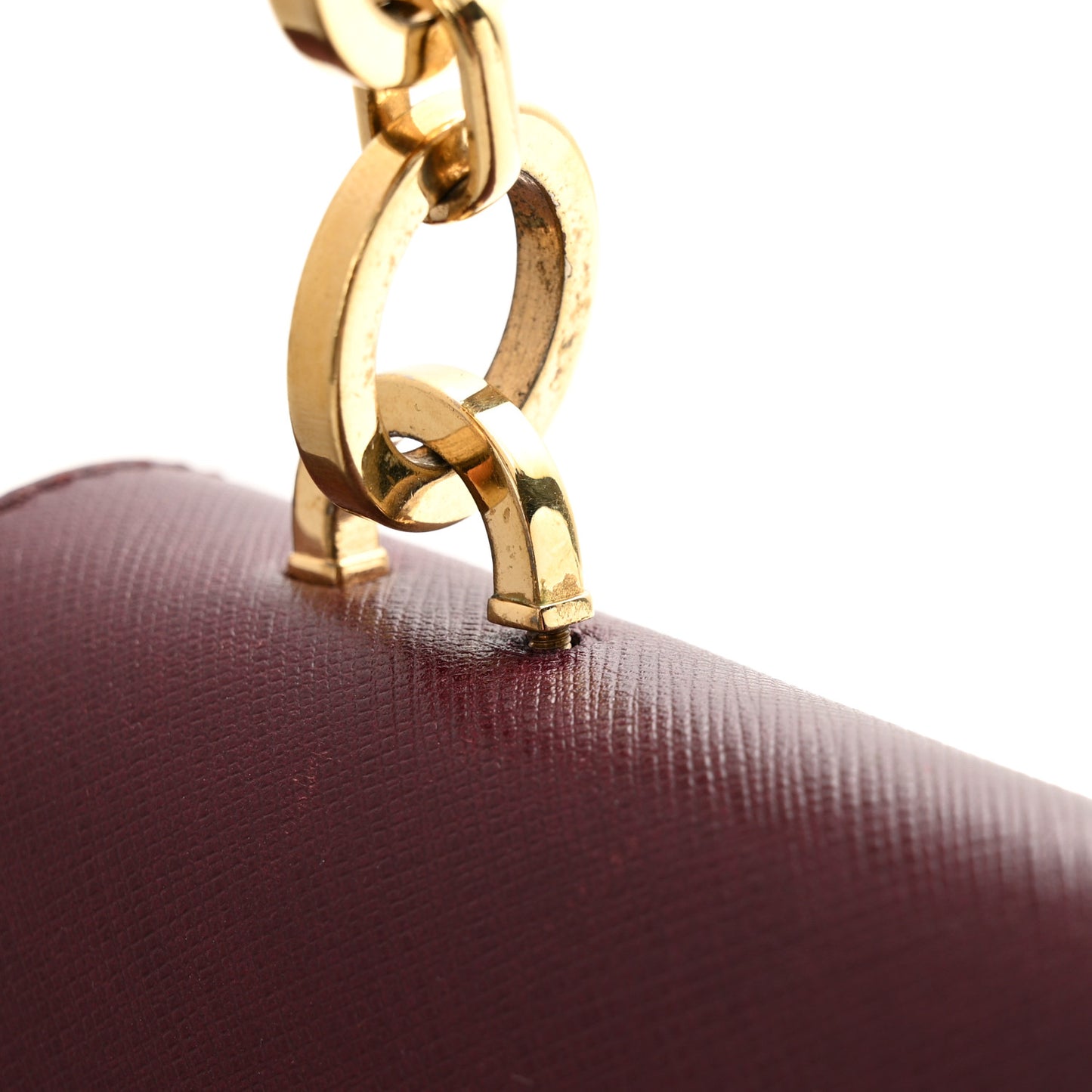 This is an authentic SALVATORE FERRAGAMO Hammered Calfskin Gancini Bree Flap in Barolo. This chic wallet on chain is finely crafted of textured leather. The bag features a removable gold chain strap with a leather shoulder pad and a gold push lock closure. This opens to a fabric with zipper and flat pockets.Follow this item for alerts. Salvatore Ferragamo is a registered trademark of Salvatore Ferragamo. FASHIONPHILE is not affiliated with Salvatore Ferragamo.