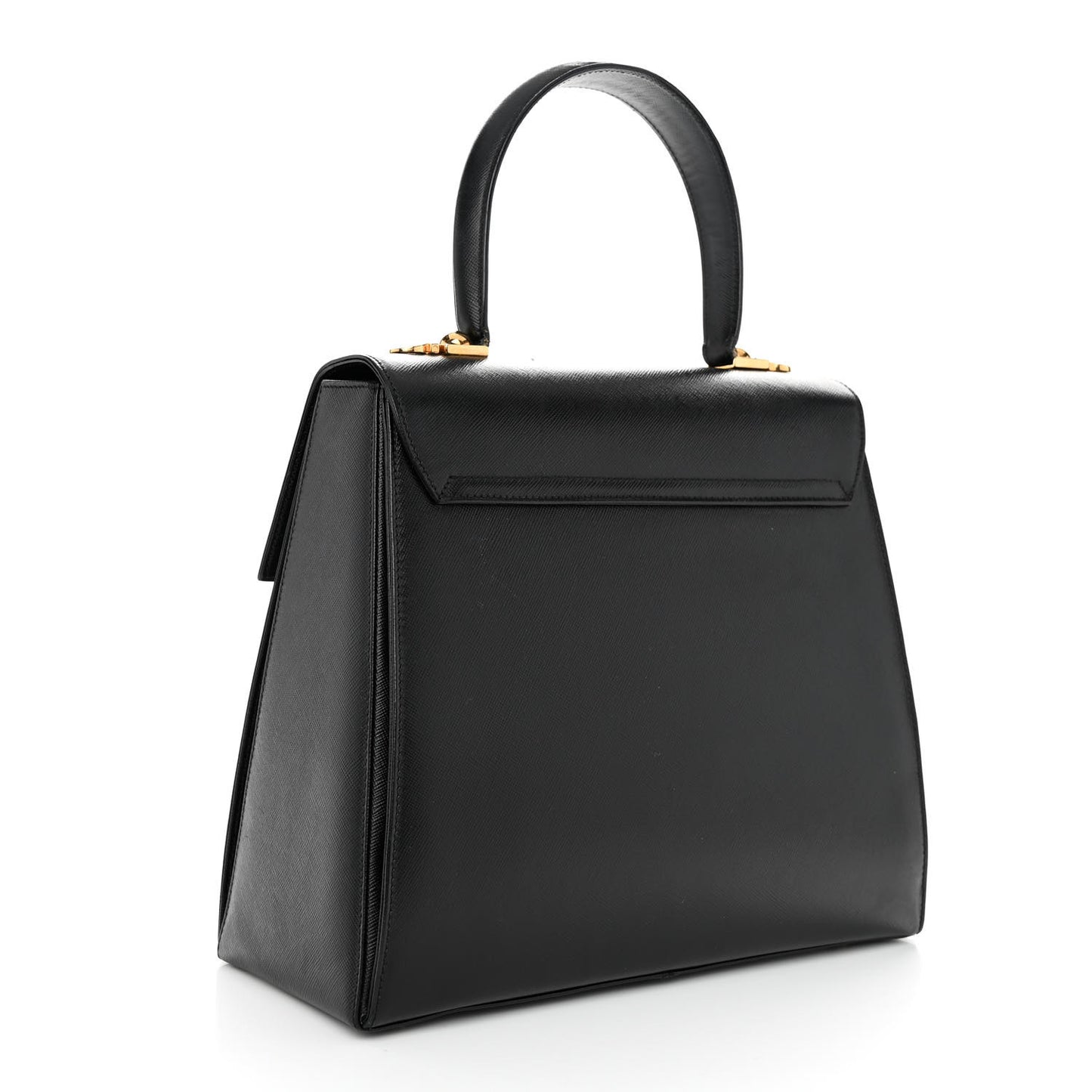 Salvatore Ferragamo/ Bags/ Shoulder Bags /Salvatore Ferragamo Hammered Calfskin Medium Iconic Top Handle Bag Black