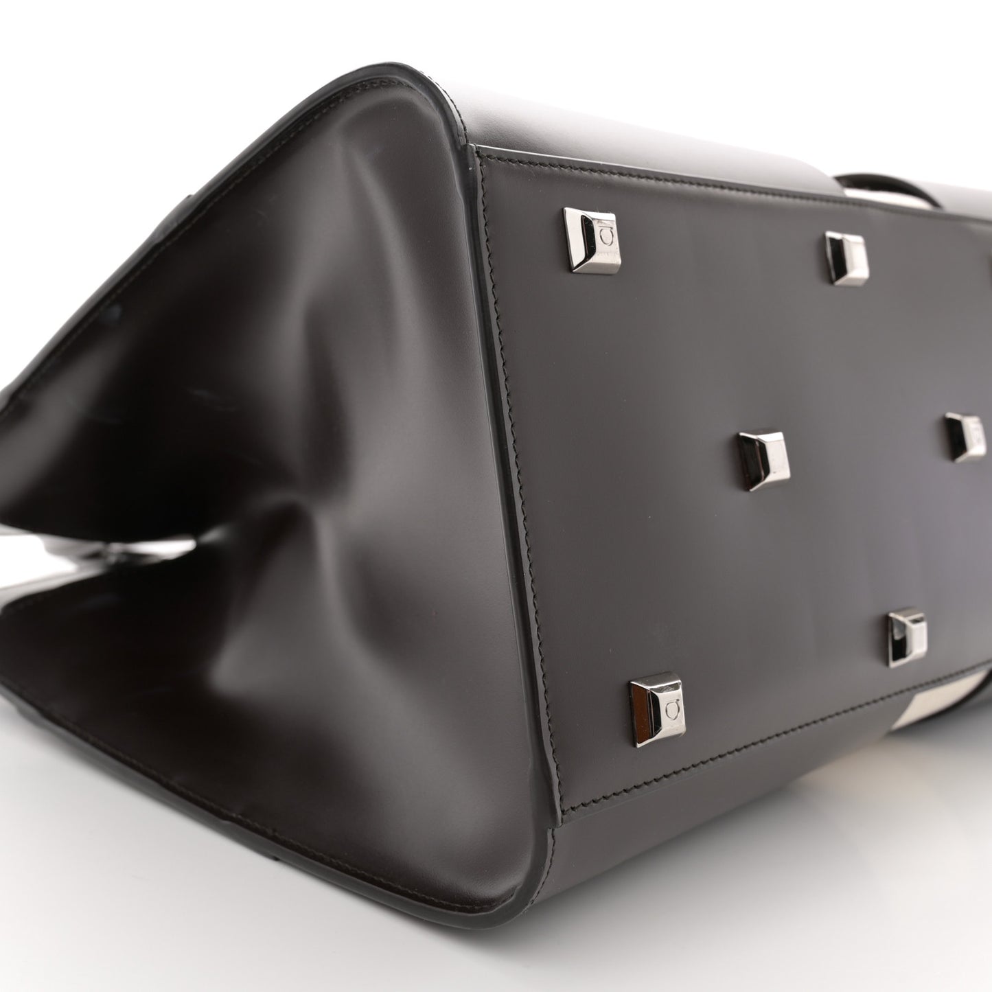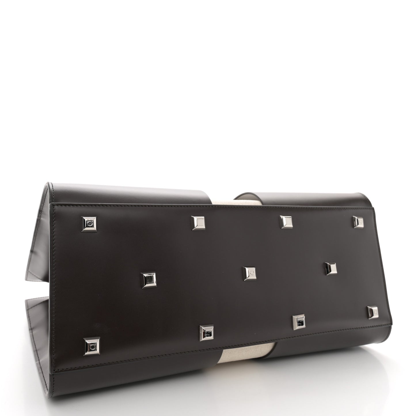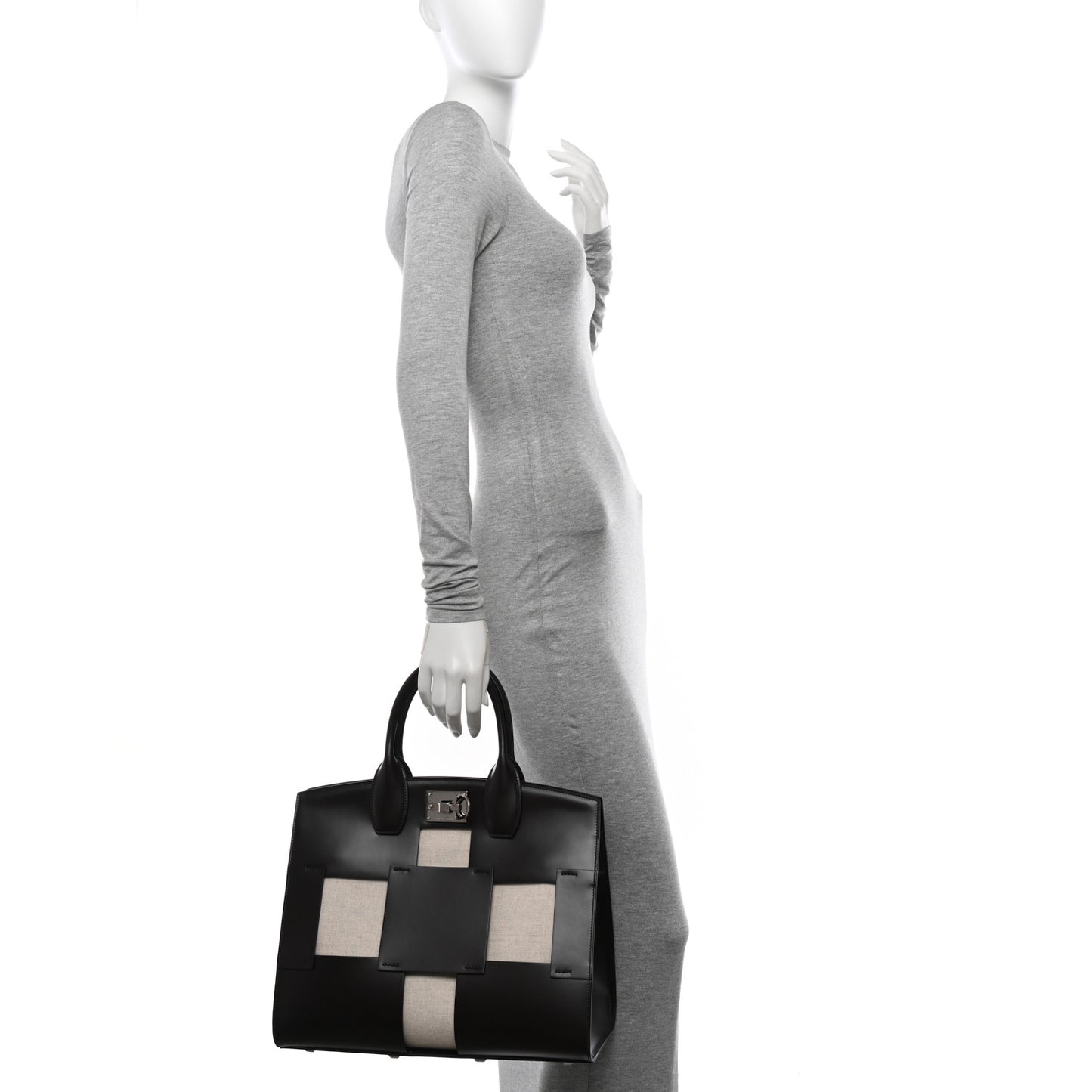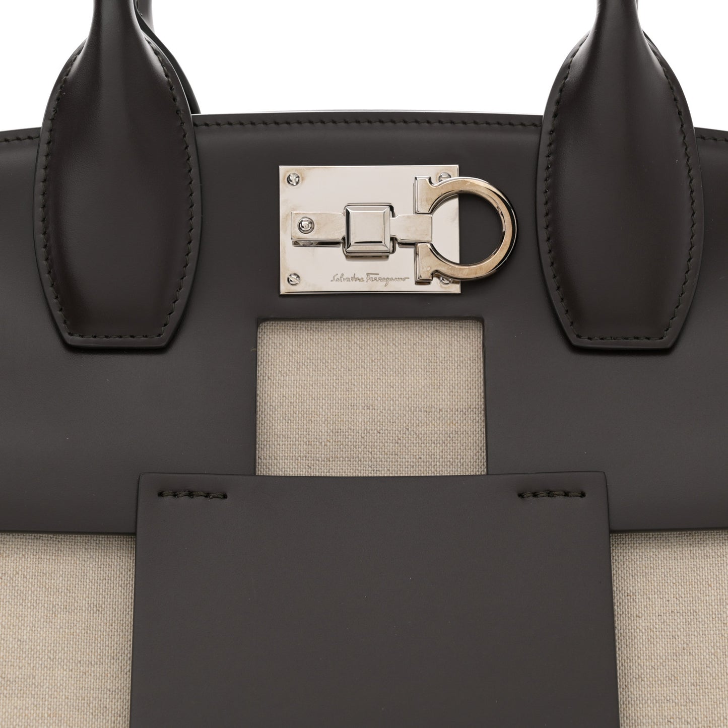 Salvatore Ferragamo/ Bags/ Totes /Salvatore Ferragamo Hickory Calfskin Canvas Cutout The Studio Box Bag Beige Brown