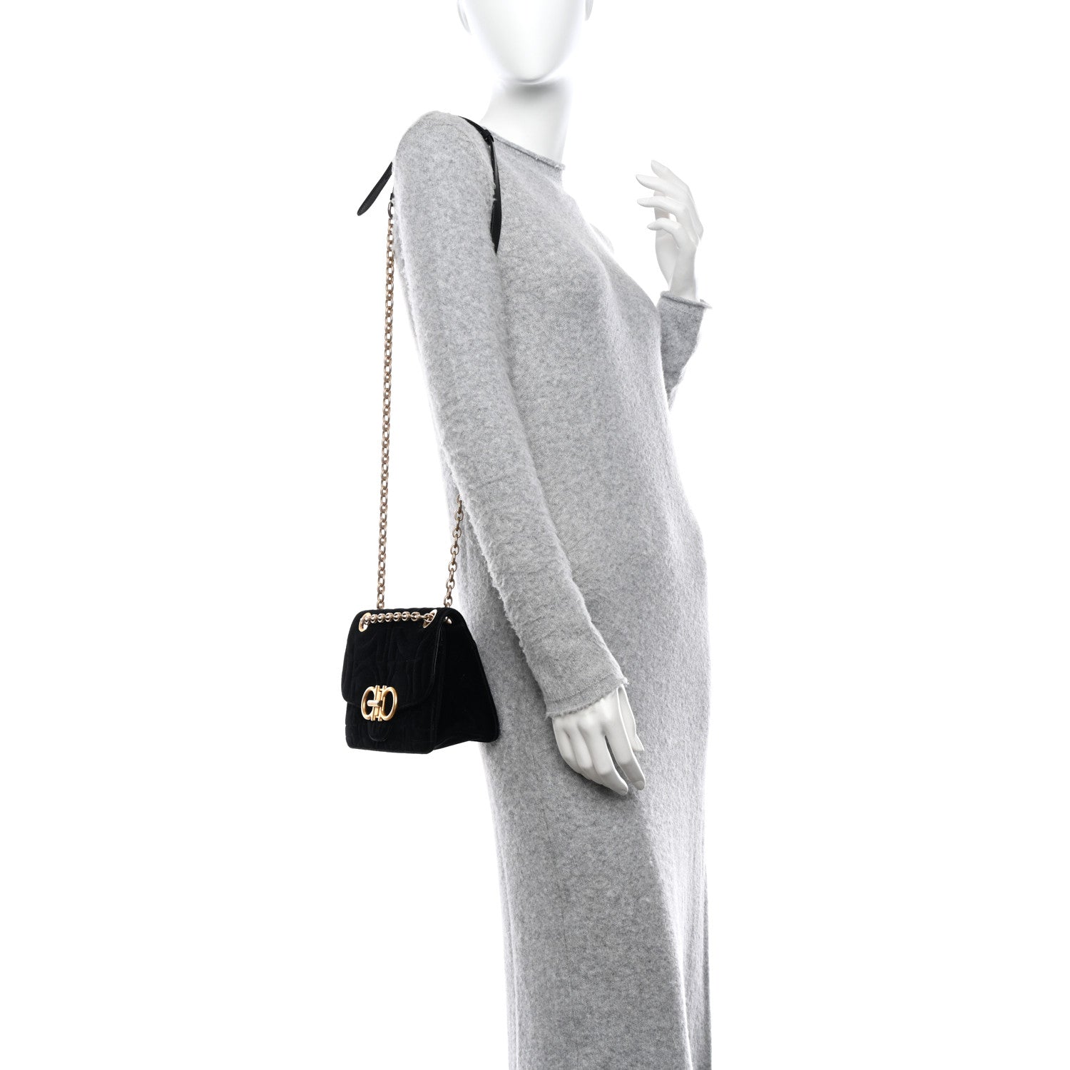 This an authentic SALVATORE FERRAGAMO Velvet Quilted Gancini Flap Bag in Black. This chic day to evening bag is crafted of luxurious textured quilted velvet in black. The shoulder bag features an adjustable leather and gold chain shoulder strap. The front flap opens to a black leather interior with a front pocket and zipper pocket.Follow this item for alerts. Salvatore Ferragamo is a registered trademark of Salvatore Ferragamo. FASHIONPHILE is not affiliated with Salvatore Ferragamo.