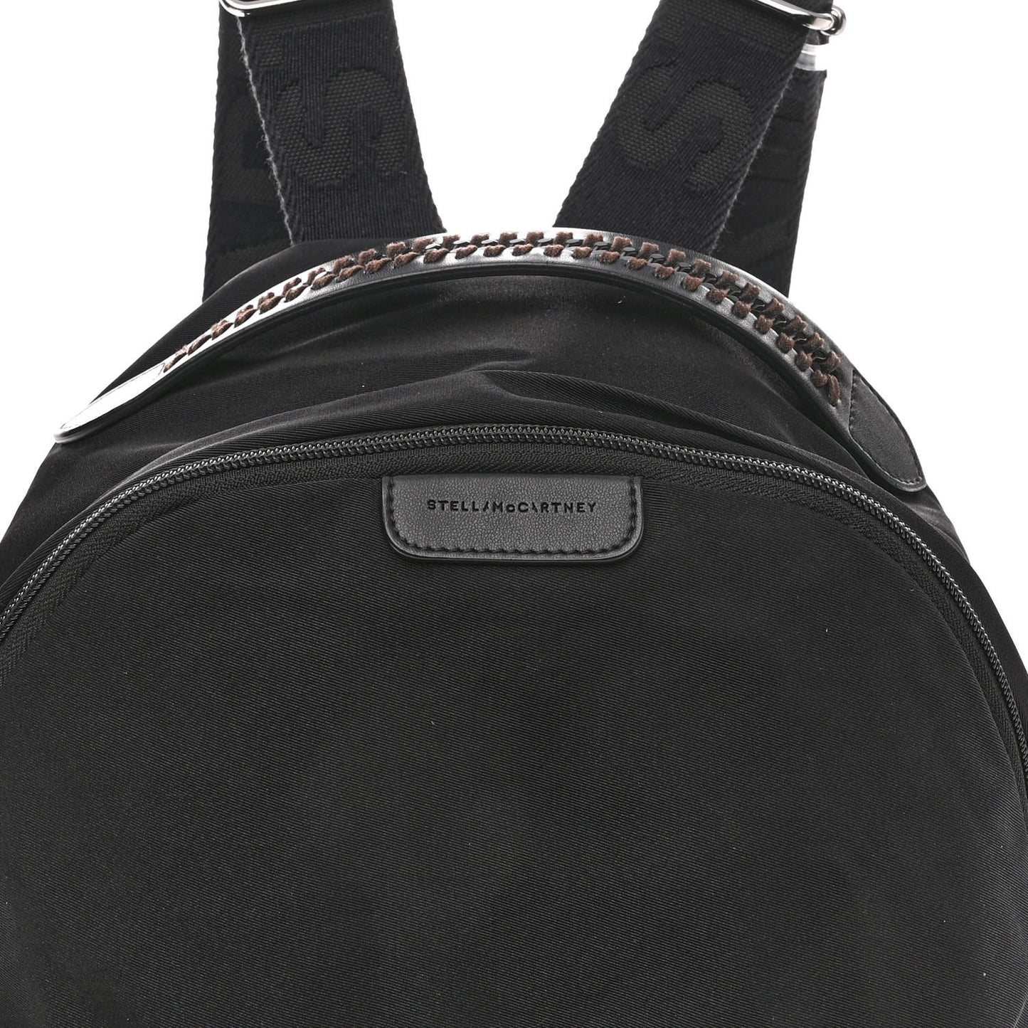 This is an authentic STELLA MCCARTNEY Nylon Falabella Logo Go Backpack in Black and White. This chic backpack is crafted of black nylon. The shoulder bag features a signature polished silver Falabella chain incorporated on the handle of the bag, an exterior zipper pocket, and canvas adjustable shoulder straps. This stylish backpack opens to a black jacquard interior with a pocket.Follow this item for alerts. Stella McCartney is a registered trademark of Stella McCartney. FASHIONPHILE is not affiliated with Stella McCartney.