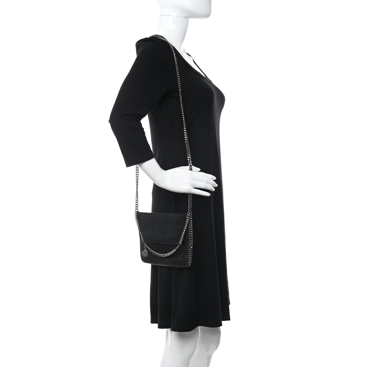 This is an authentic STELLA MCCARTNEY Shaggy Deer Falabella Mini Crossbody Bag in Black. This stylish clutch is crafted of fine vegan leather in black. This bag is entirely bordered with polished silver chain links that make the shoulder strap. The flap opens to a jacquard fabric interior.Follow this item for alerts. Stella McCartney is a registered trademark of Stella McCartney. FASHIONPHILE is not affiliated with Stella McCartney.