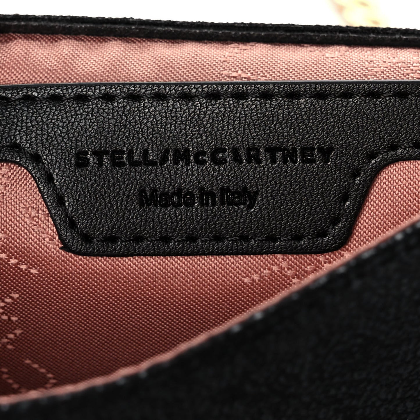 This is an authentic STELLA MCCARTNEY Shaggy Deer Mini Falabella Crossbody Bag in Black. This stylish shoulder bag is crafted of iridescent vegan fabric in black. The bag is bordered with polished gold chain links that make a continuous shoulder strap. The flap opens with a magnet to a pink jacquard fabric interior with a patch pocket.Follow this item for alerts. Stella McCartney is a registered trademark of Stella McCartney. FASHIONPHILE is not affiliated with Stella McCartney.