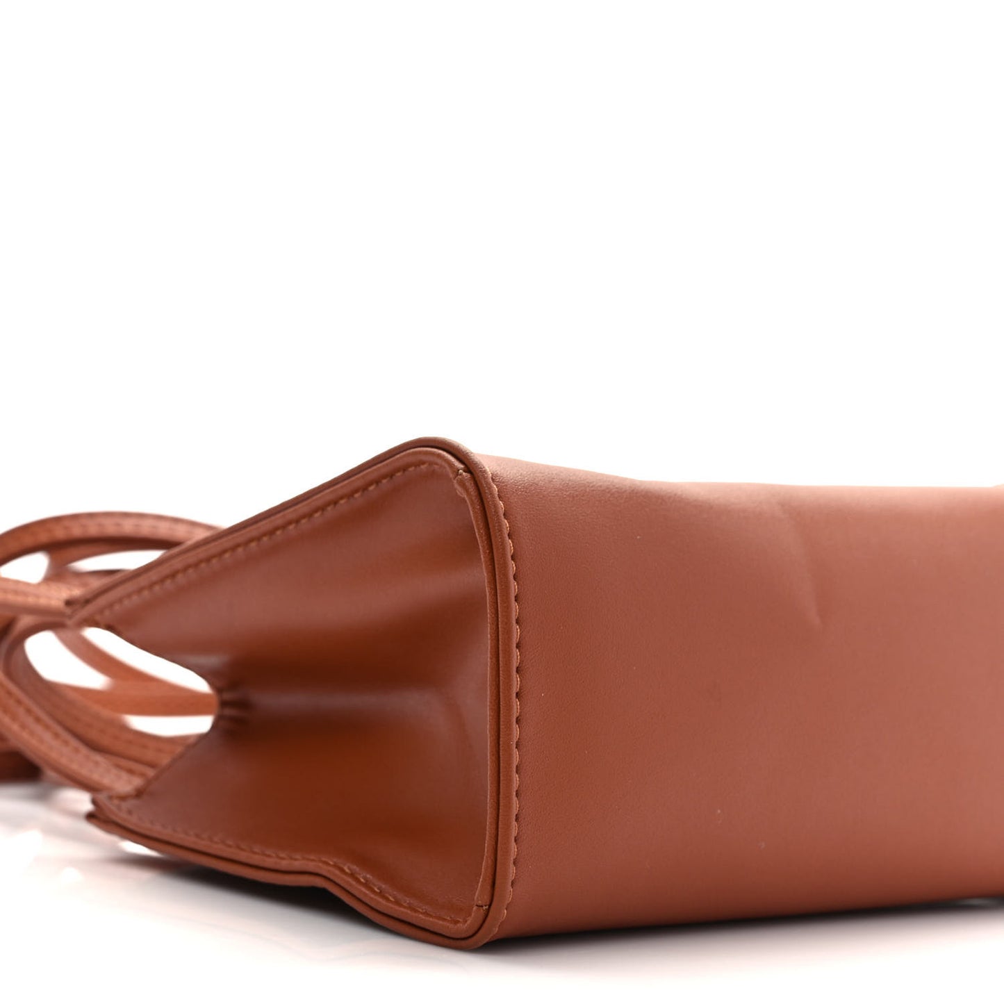 This is an authentic TELFAR Vegan Leather Small Shopping Bag in Tan. This mini tote is constructed of faux leather in brown with the iconic raised Telfar logo at the front. The shoulder bag has thin brown handles and a long crossbody strap. The bag opens to a brown fabric interior.Follow this item for alerts. Telfar is a registered trademark of Telfar. FASHIONPHILE is not affiliated with Telfar.