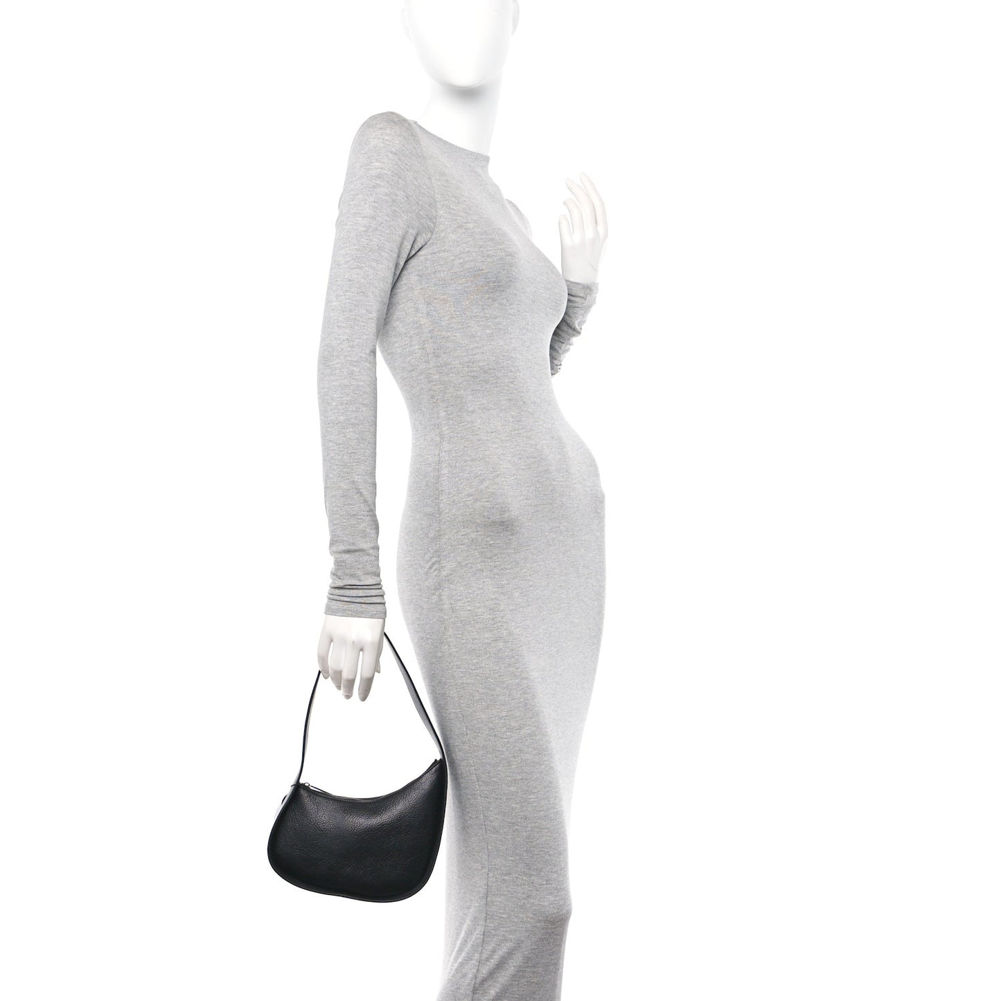 This is an authentic THE ROW Grained Calfskin Half Moon Shoulder Bag in Black. This chic shoulder bag is crafted of luxuriously brown calfskin leather. The bag features a shoulder strap and a silver zipper. The bag opens to a leather interior.