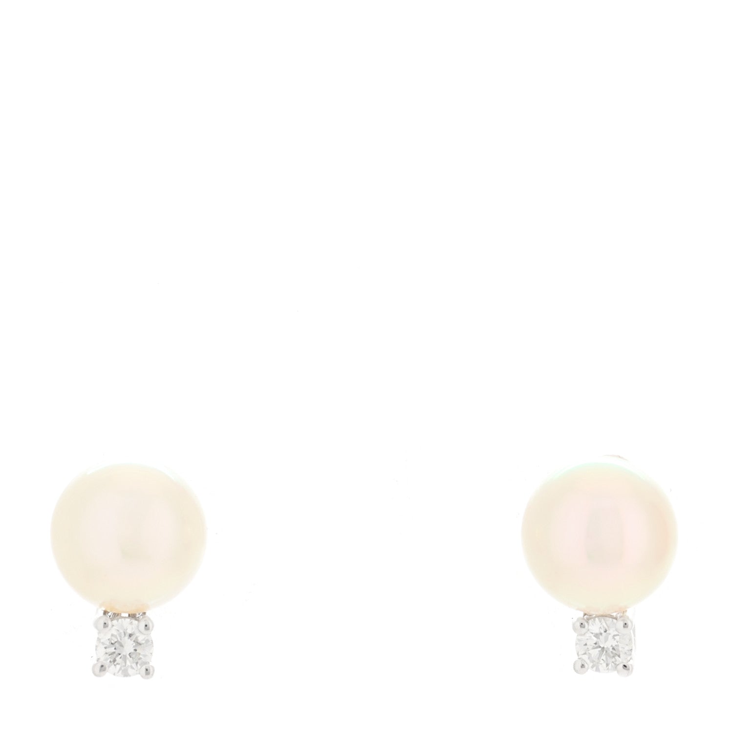 This is an authentic pair of TIFFANY 18K White Gold Diamond Akoya Pearl 6.5-7mm Signature Earrings. The earrings are crafted of 18-karat white gold and feature 6.5-7mm white Akoya cultured pearls and round brilliant cut diamonds, approximately .10 total carat weight.Follow this item for alerts. Tiffany is a registered trademark of Tiffany. FASHIONPHILE is not affiliated with Tiffany.